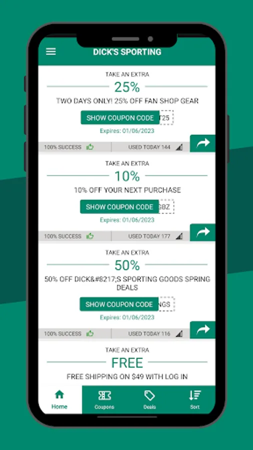 Introducing the new "Dick's Sporting Goods Coupons" app, your ultimate destination for the latest and greatest deals on all your favorite sporting goods. Whether you're a seasoned athlete or just getting started, our app is the perfect companion for anyone looking to save big on high-quality sports equipment, apparel, and accessories.
