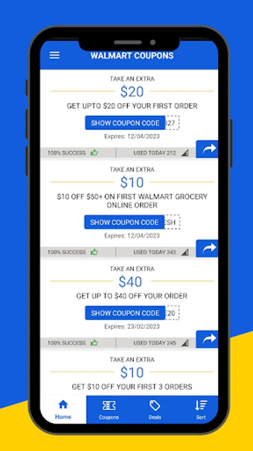 Our app includes a variety of exclusive Walmart coupons, promo codes, and deals. We offer discounts on different products, such as electronics, home goods, clothing, and more. Additionally, we have special sales and discounts for Black Friday, Cyber Monday, and more.