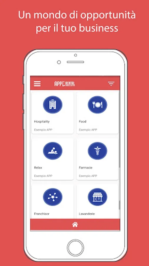 2. use cases: by selecting the appropriate commercial categories, it will be possible to transform the AppMobileRental App into a demo app for the purposes of commercial proposition; In other words, the Reseller can commercially promote the AppMobileRental service by showing different use cases according to the commercial category of the potential Client (eg Hotels, Cafés, Restaurants, Barber Shops, Museums, Shopping Centers, Franchisors, Sport Centers, etc. );