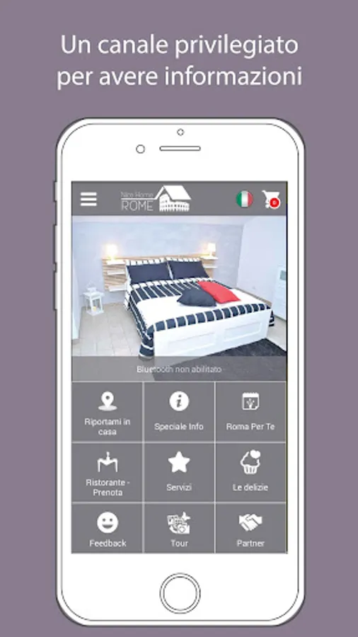 The app allows our users to stay in contact with the structure, we will be able to accompany you on your journey to discover the eternal city, we will know you easily recommend a typical restaurant to taste the Roman cuisine or book a tour offered by our partners and other services yet to be discovered.