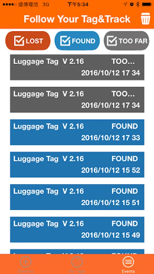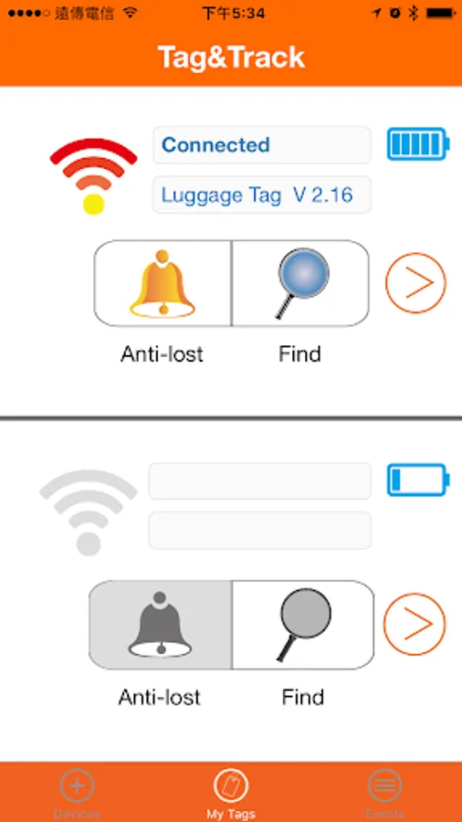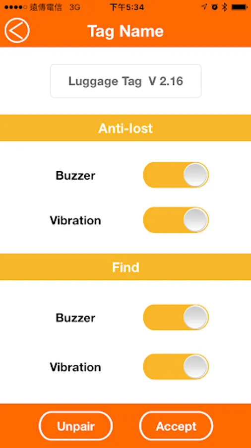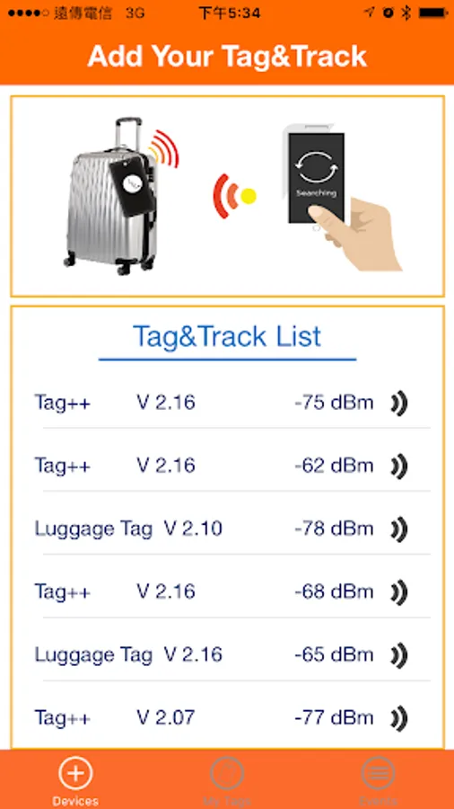 Tag & Track can remind you of your most important things during travel. Pair the App with Tag & TrackBluetooth luggage tag, so your mobile device and luggage are now linked. When the App is at "find mode", you will be alarmed when your luggage iscoming out from the carousel. When the App is at "anti-lost" mode, you will receive alerts when luggage is out of your sight. Make misplacing your belongings a thing of the past!