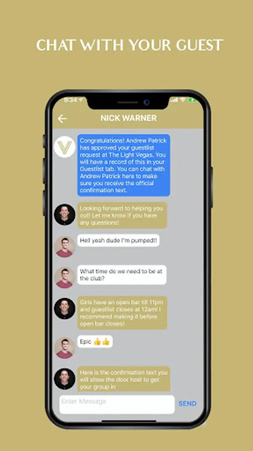 Once you have approved a guestlist, you will be able to chat with them and send them any confirmation text required by your club. You will also be able to see the all names on the guest list request and copy/paste them into UrVenue, VenueDriver, or which ever guestlist management tool you use.