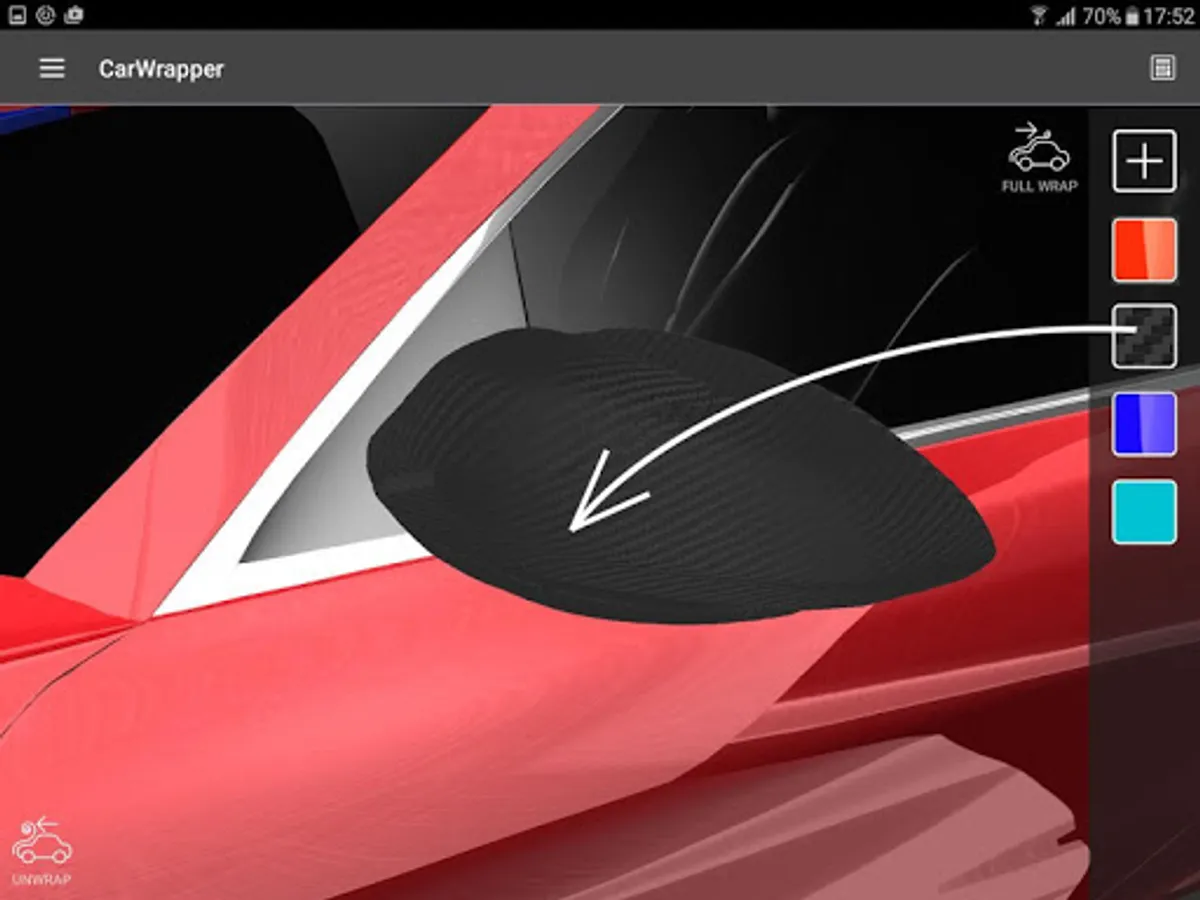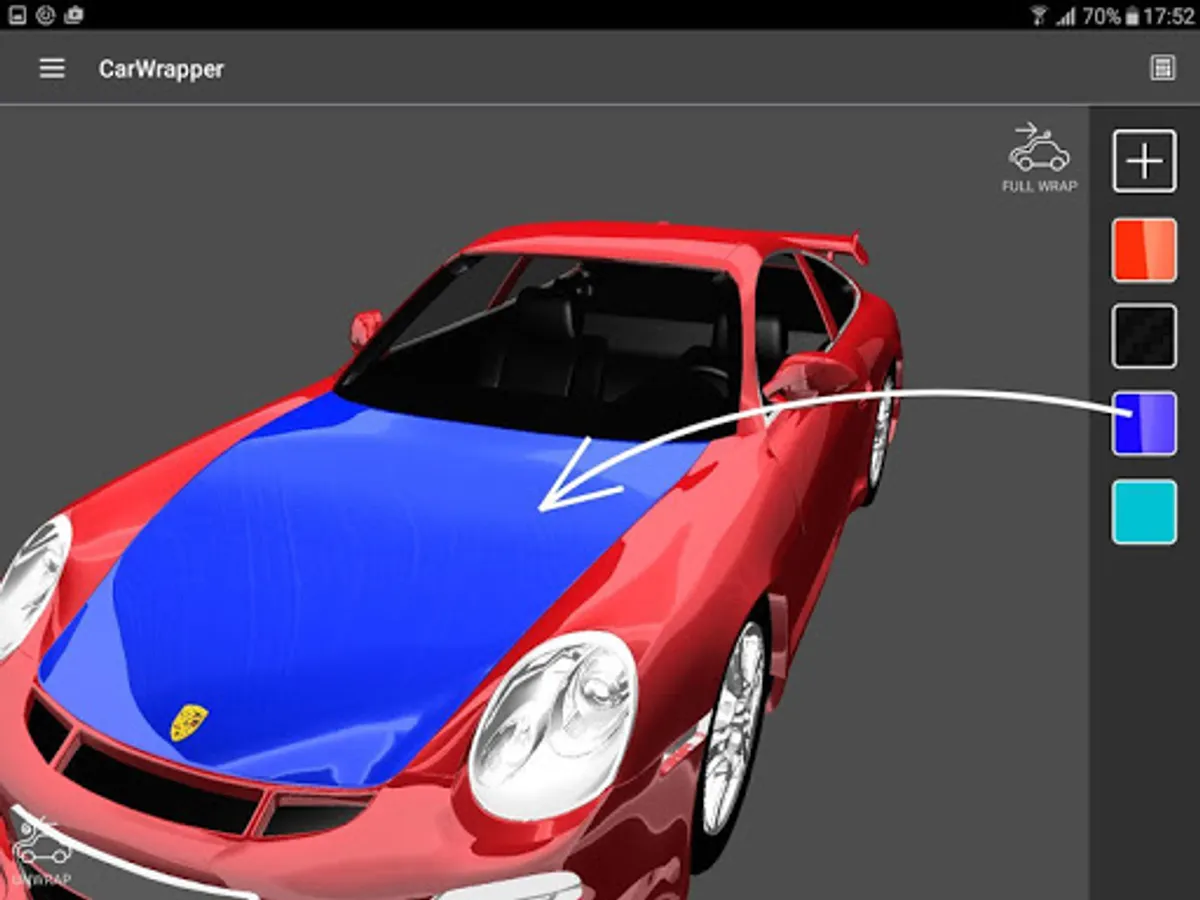 Zoom and rotate car. Personalise precisely every car body detail. Or wrap the whole car at once.