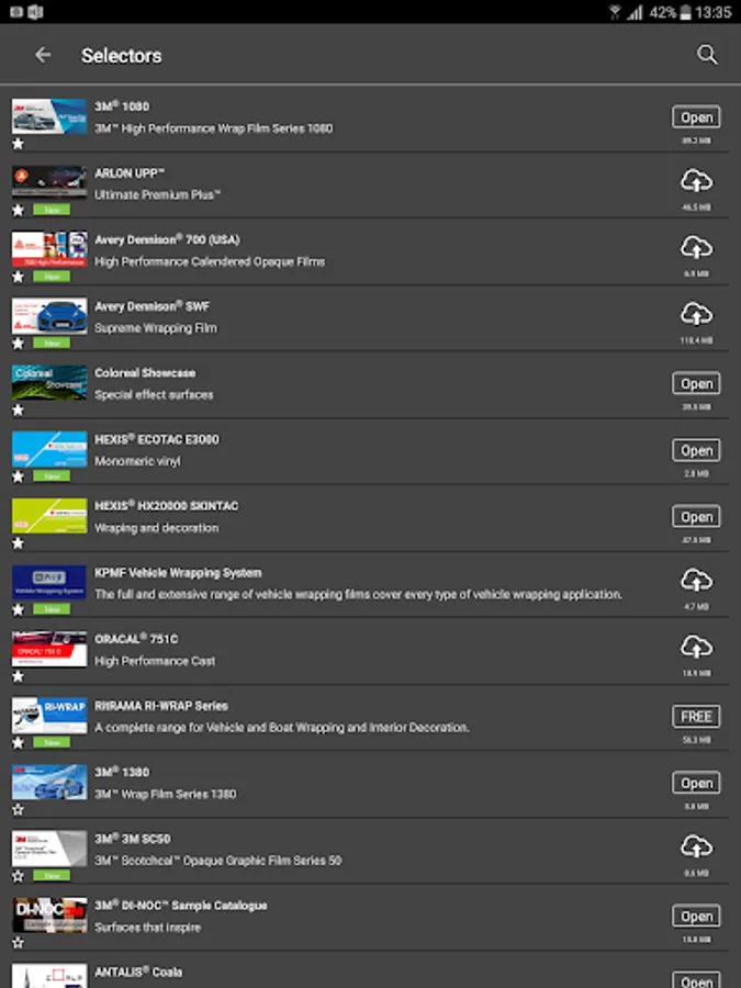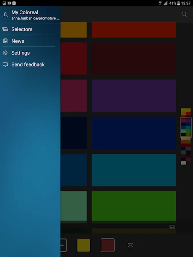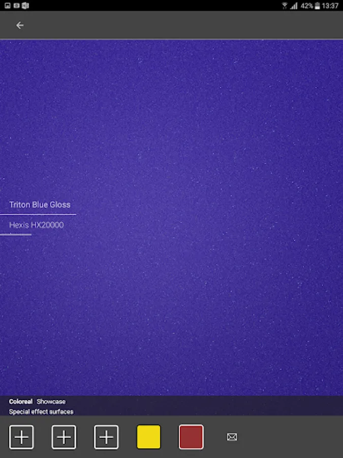 Swipe selector cards on screen naturally just like in real life. Search for a color by number or name, brand or usage type. Use MagicWheel when in need for a certain material usage type. See chosen color on full screen, show it to the client immediately or send it to him via email.