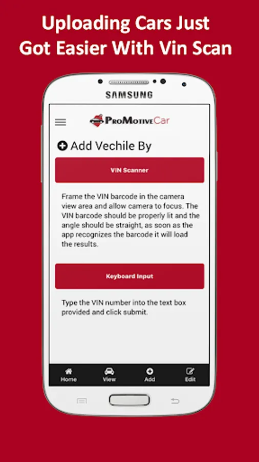 • Scan and decode VIN’s for instant details, with vehicle descriptions from our ProMotiveCar VDP database, add pricing, miles and your inventory is live in minutes.