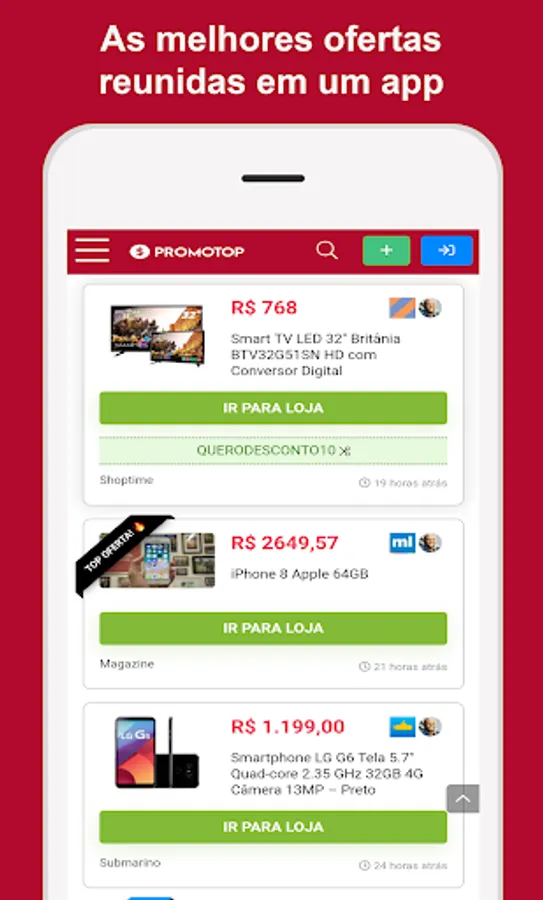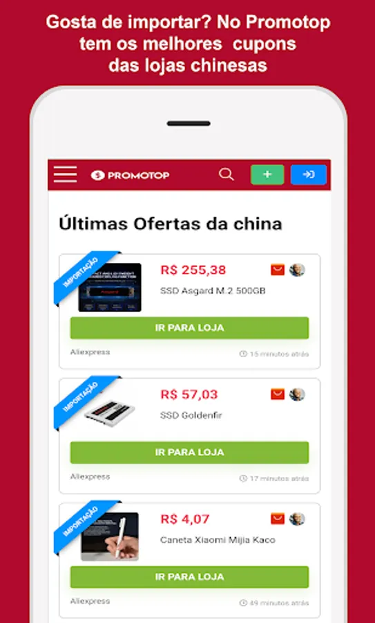 Find on Promotop promotions, offers and coupons of the biggest brands in Brazil and also from china, among them: Lojas Americanas, Amazon, AliExpress, Banggood, Casas Bahia, Centauro, Carrefour, Geekbuying, Gearvita, Gearbest, Natura, Dafiti, Extra, Fast Shop, Kanui, Luiza Magazine, Netshoes, Cold Spot, Shoptime, I'm Cheap, Steam, Submarine, TomTom, Walmart and more!