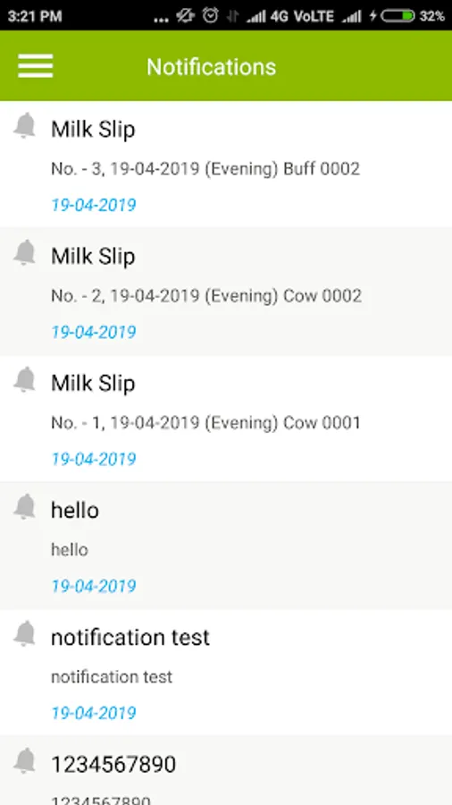 3. All your milk data in one place with a timely reminder to pay attention with notification