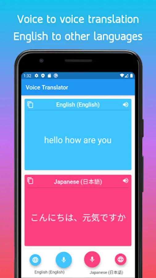 A tiny and easy to use voice translation app. Tap the mic button and speak, your voice will be translated immediately and read aloud in target language.
