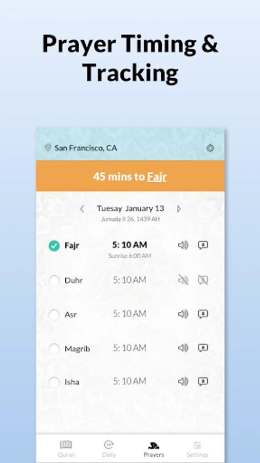 - Track your progress on how disciplined you are with your healthy Islamic practices.