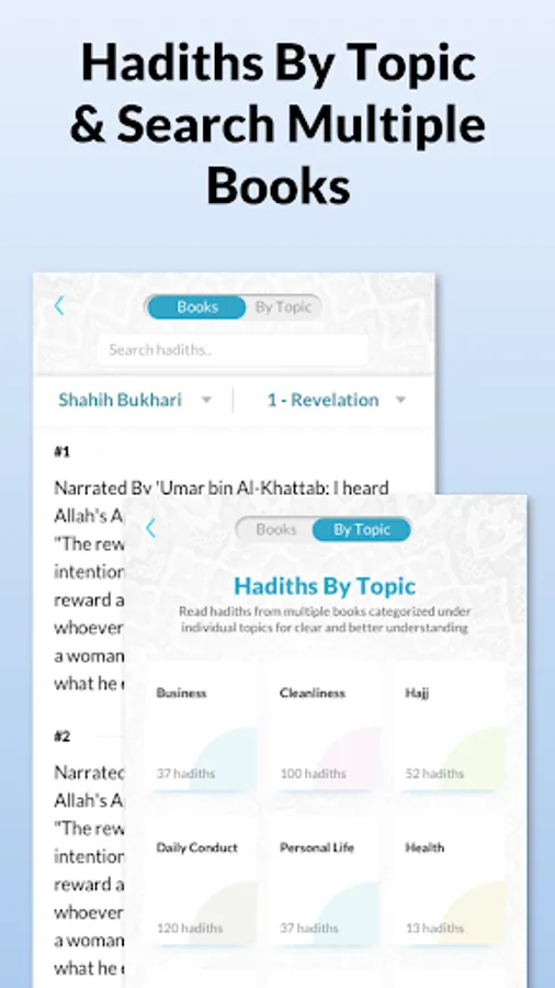 - Access entire collection of hadiths from Sahih Bukhari, Sahih Muslim, Abu Dawud,Fiqd-us Sunnah, Maliks Muwatta and Shama-il Tirmidhi