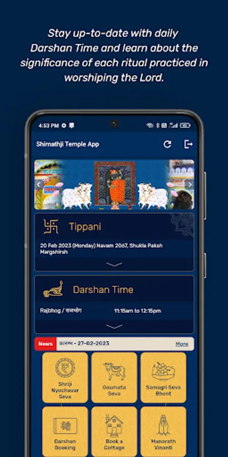 Get daily notifications about upcoming events and celebrations of important festivals to be held at Nathdwara temple through the Daily News feature.