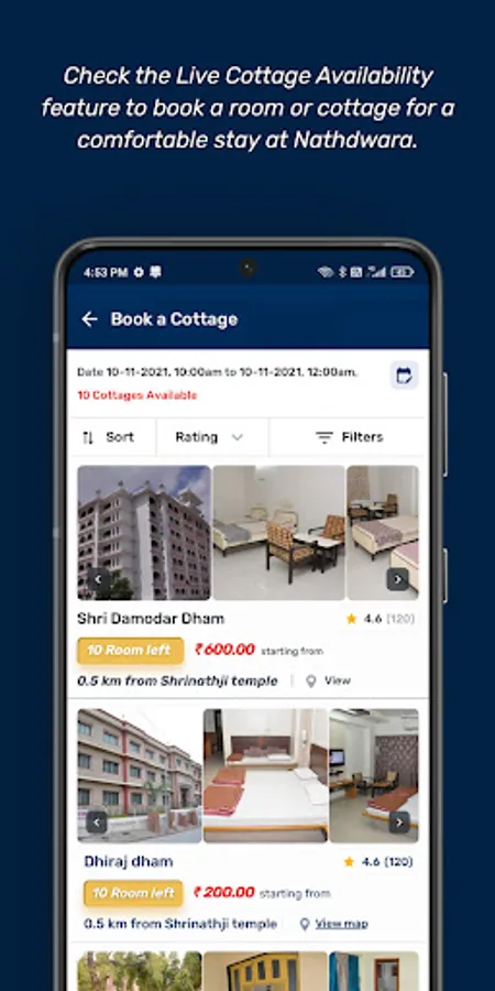 You can also view vacant cottages and book them in advance for a comfortable stay from anywhere through the Cottage Booking feature in the Shrinathji Mobile App.