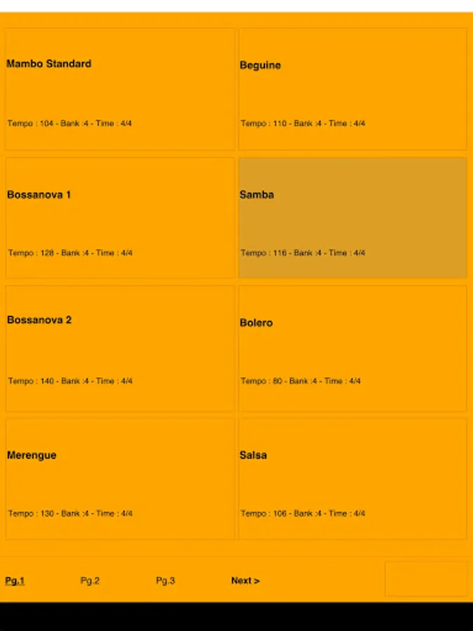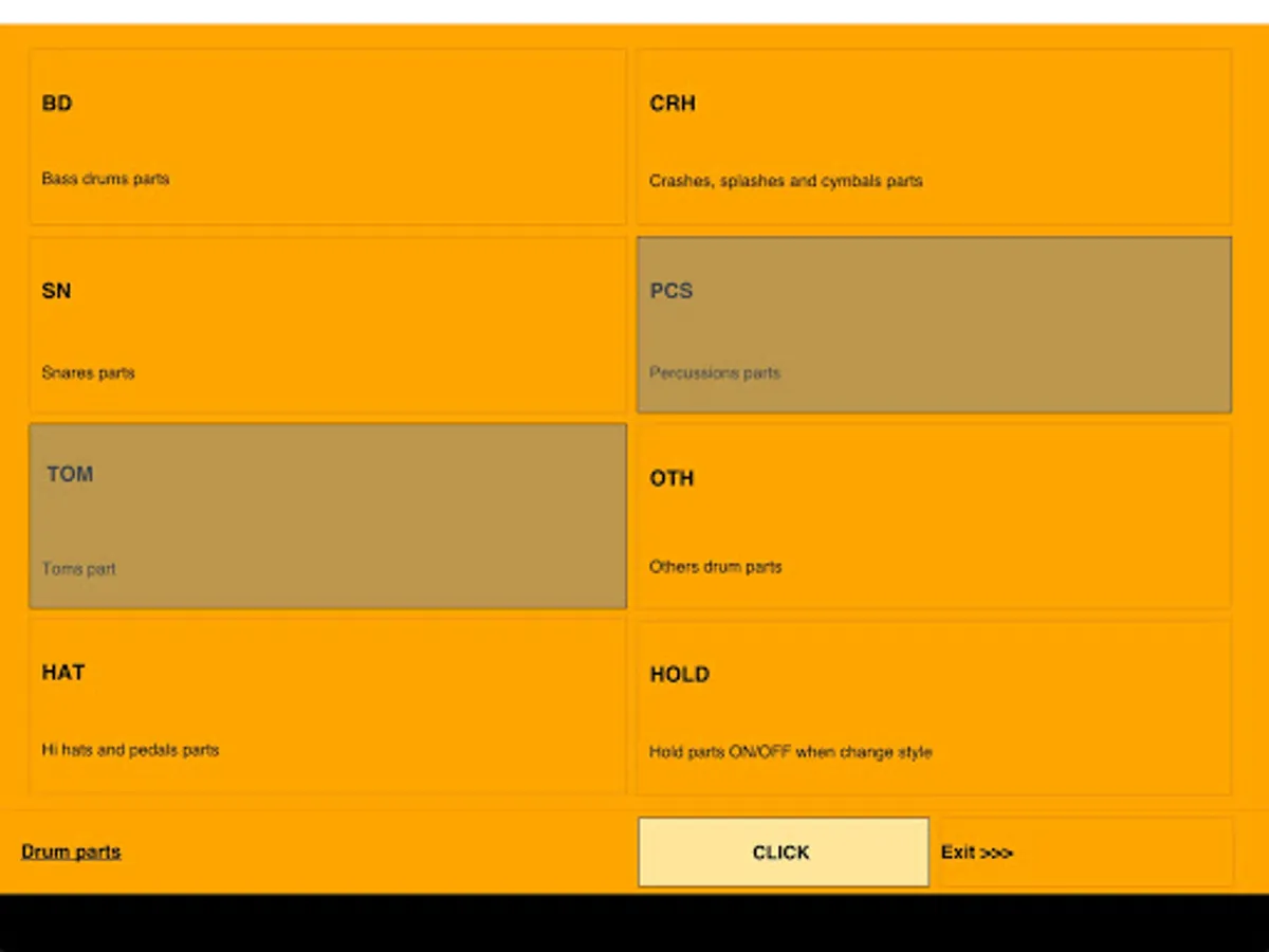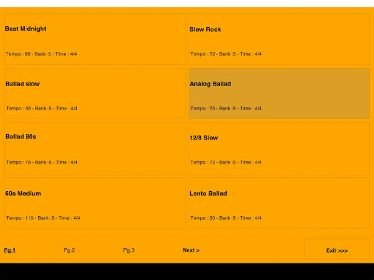 - 12 Sections of rhythms with possibility to upload up to 24 rhythms for each section