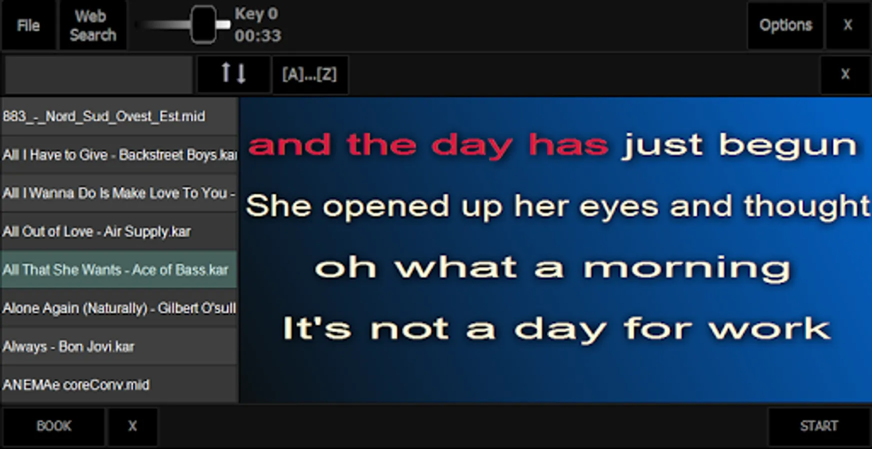 - Reading files Midi, Kar, MP3, CD-G* (mp3+g) and Wave with change key, and tempo