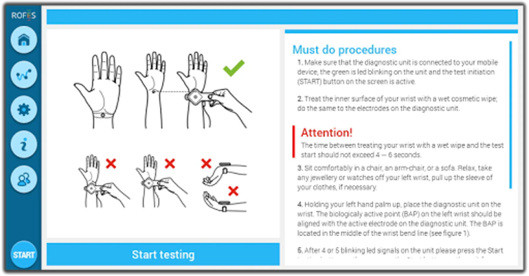 WARNING! ROFES E01C device is requires for getting the tests results. See details at www.deholding.org