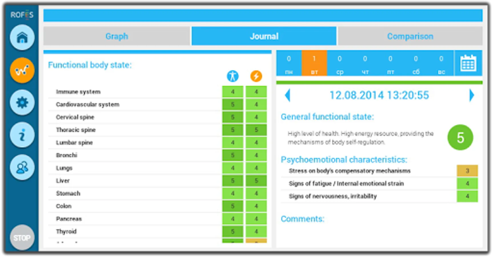 The assessment of mental and emotional state indicates the level of fatigue, stress and nervous tension, and enables you to see the influence of emotions on the work of your body.