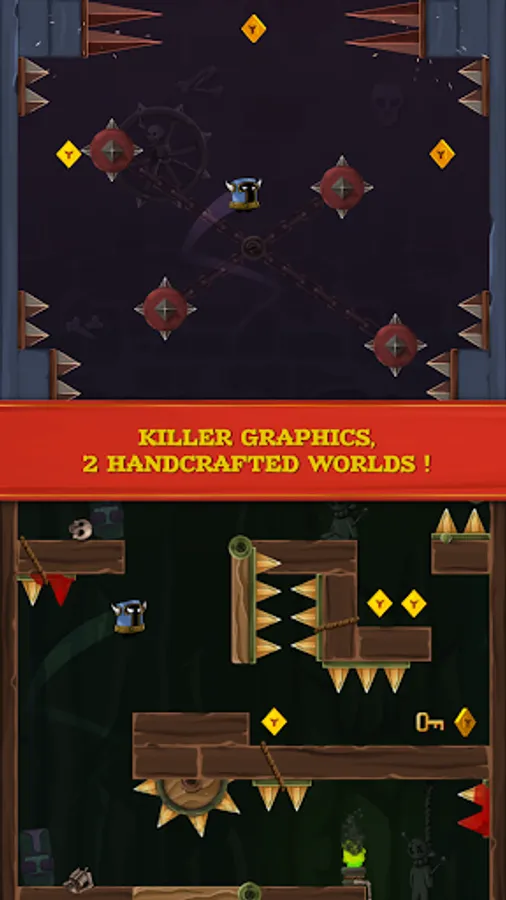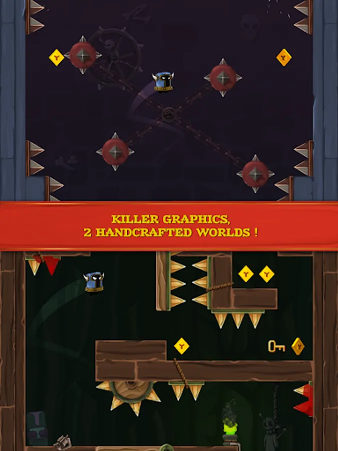 Our painters created a massive amount of truly terrifying and stunning handcrafted worlds, 2 to be precise, that total 40 unique levels, each different from the other, no two are the same. Except the 20 green ones and 20 blue ones.