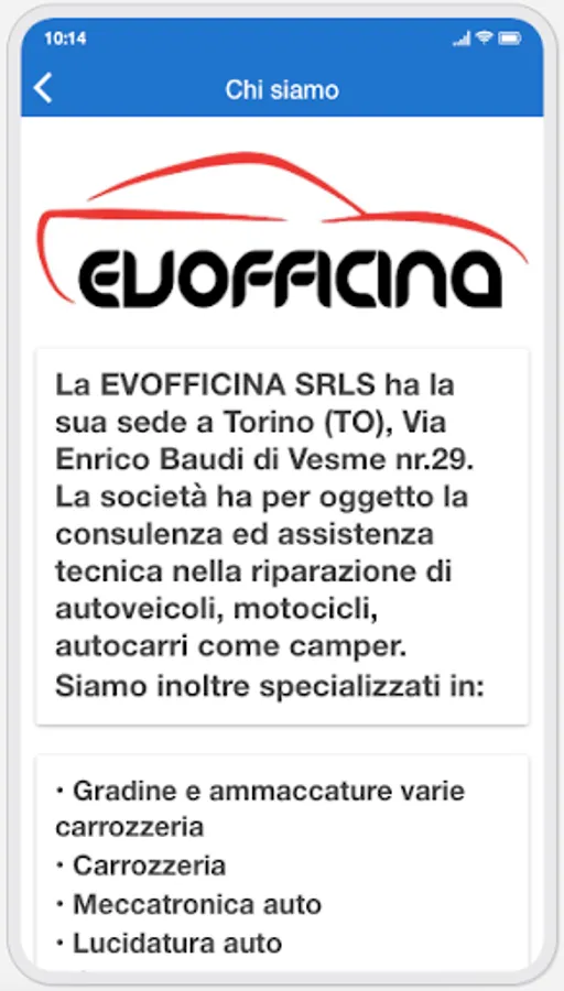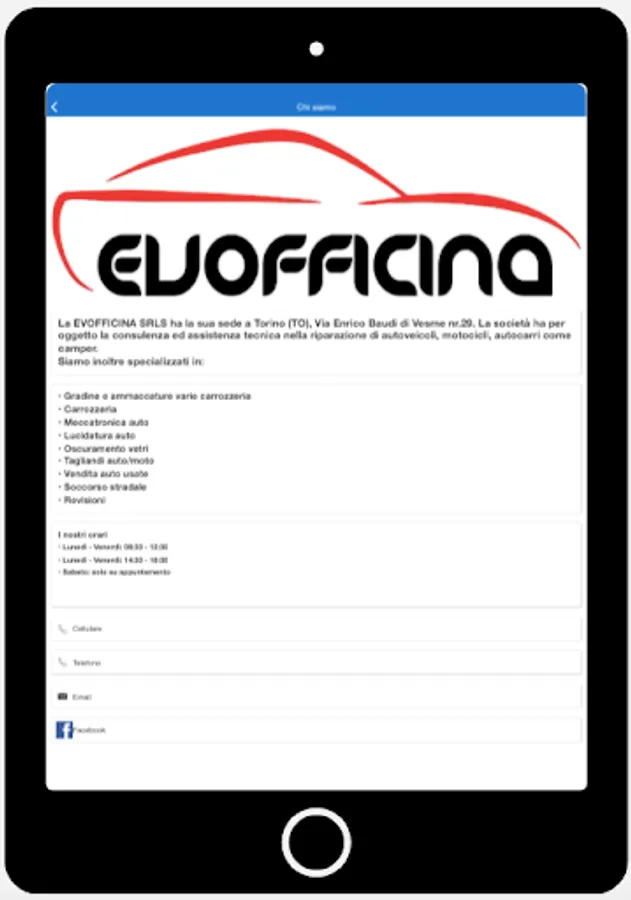 Through this App you can be in direct contact with our body shop, receive notifications regarding promotions, deadlines (e.g. overhaul, maintenance, coupon, etc.), request SOS interventions in case of urgency and have all our contact details under control.