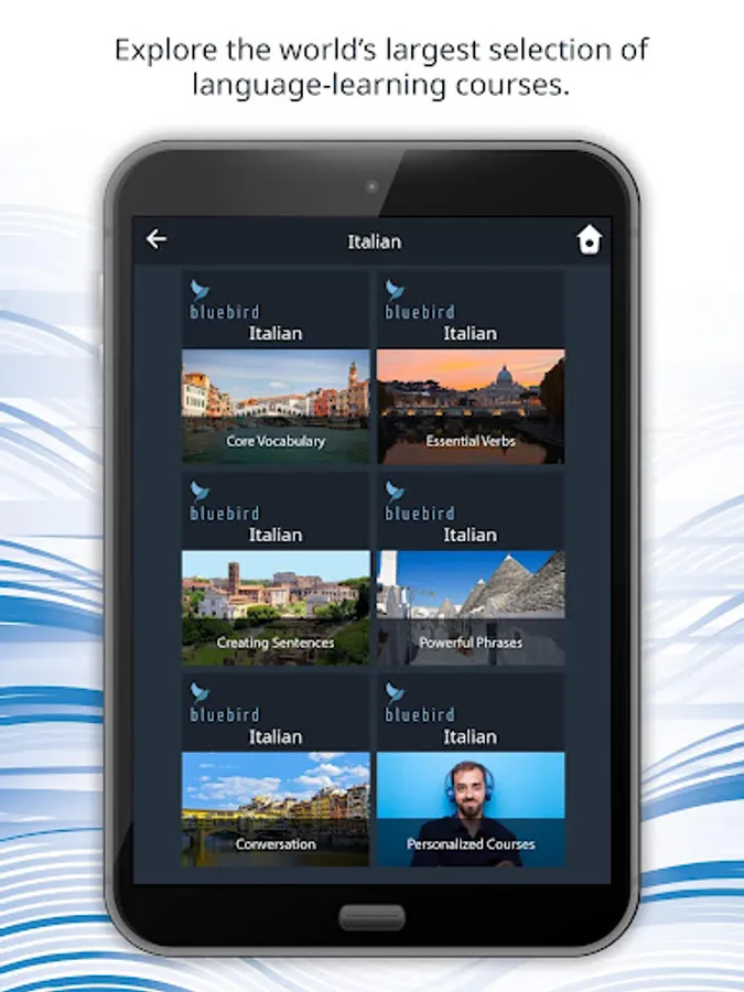 Bluebird has the most comprehensive language courses in the world, with an average of 10,000 instructional phrases per language. Each Bluebird lesson lasts between 15 and 45 minutes, with the average lesson lasting 30 minutes. Our curriculum is teacher-designed and human-translated; our narrators and actors are professional voice-over artists and native speakers of their respective languages; and our audio is studio-grade.