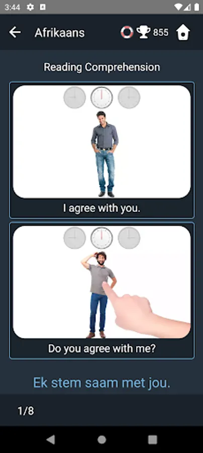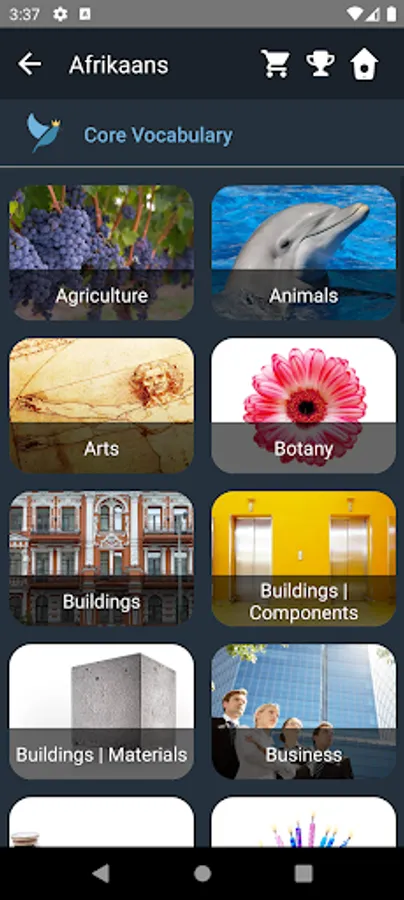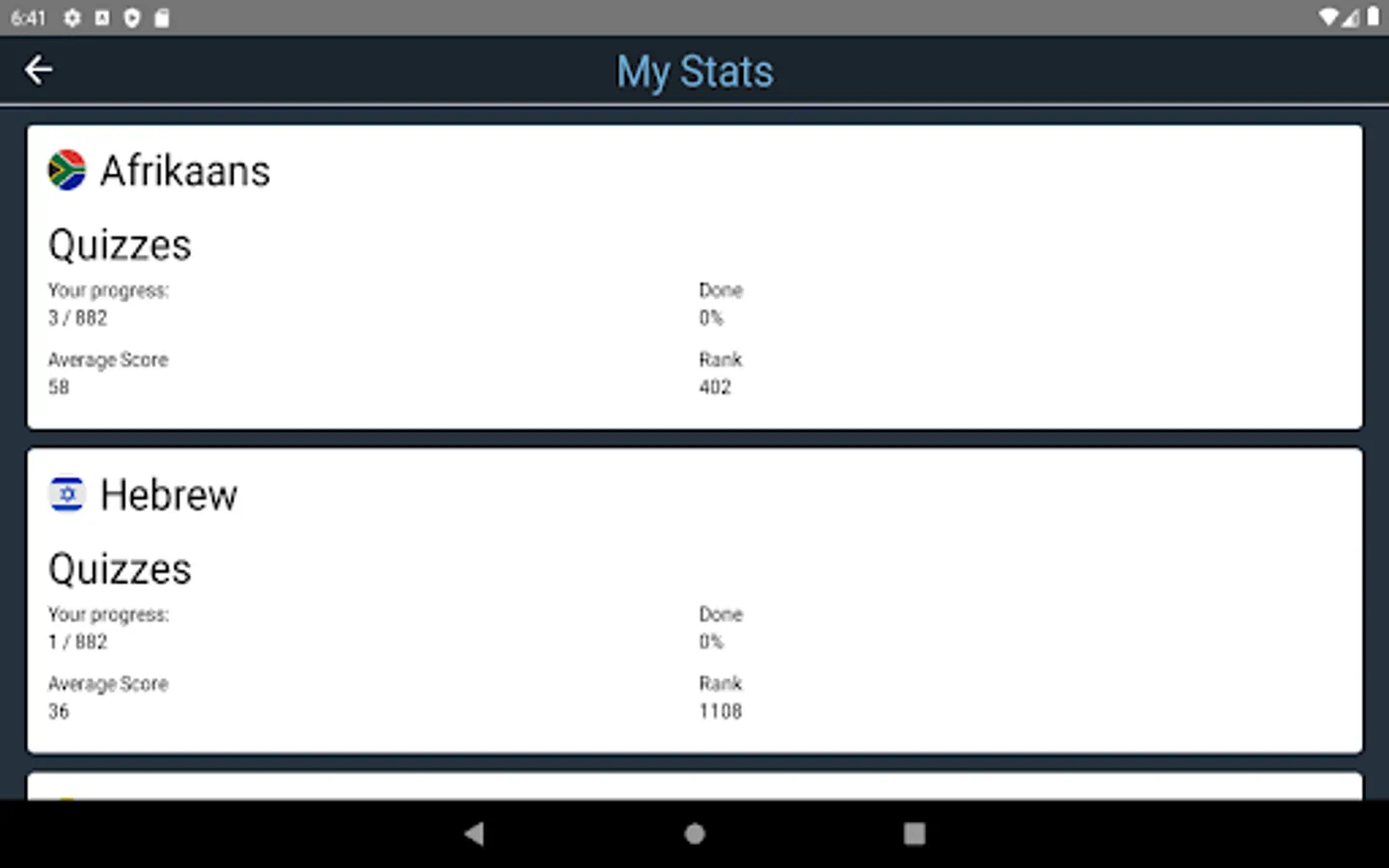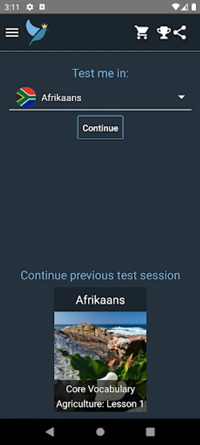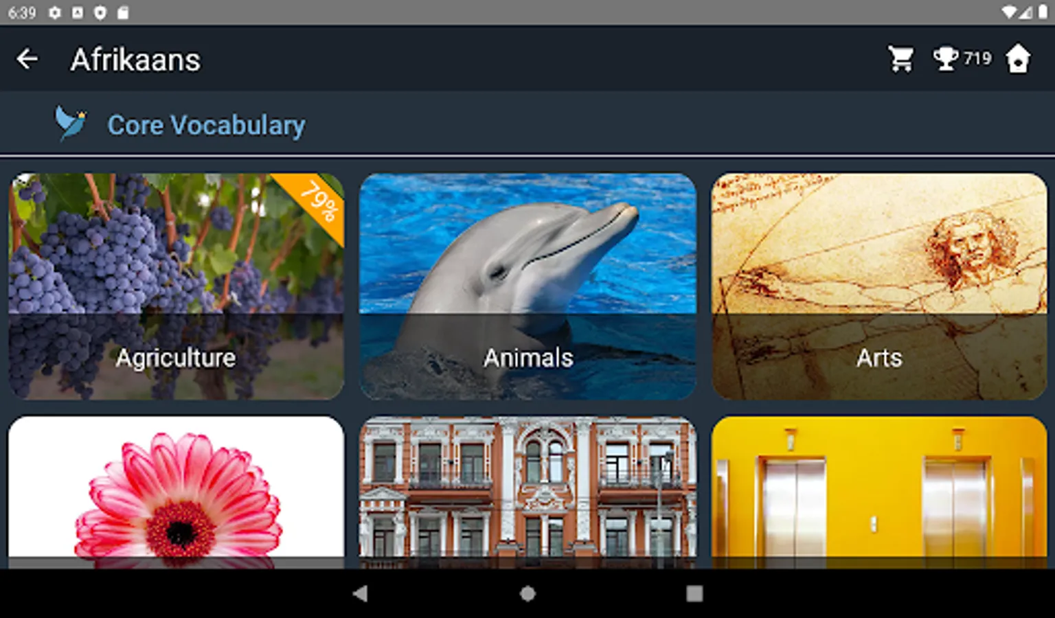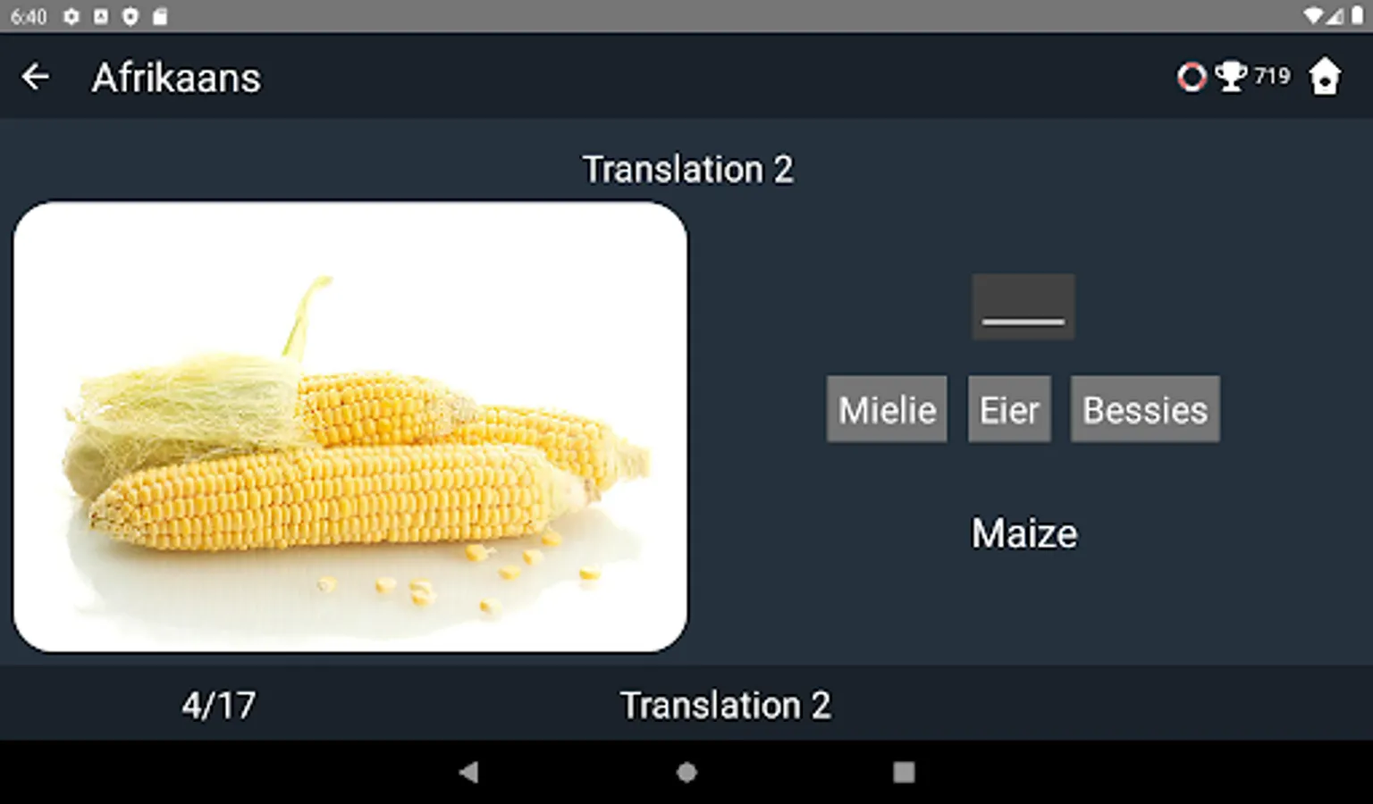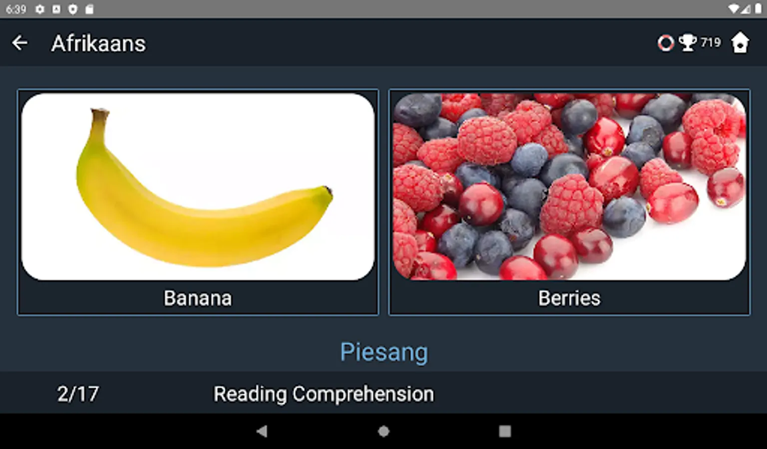 This app does not teach Afrikaans. It assumes that you already have sufficient knowledge of Afrikaans and specializes in assessing your proficiency.