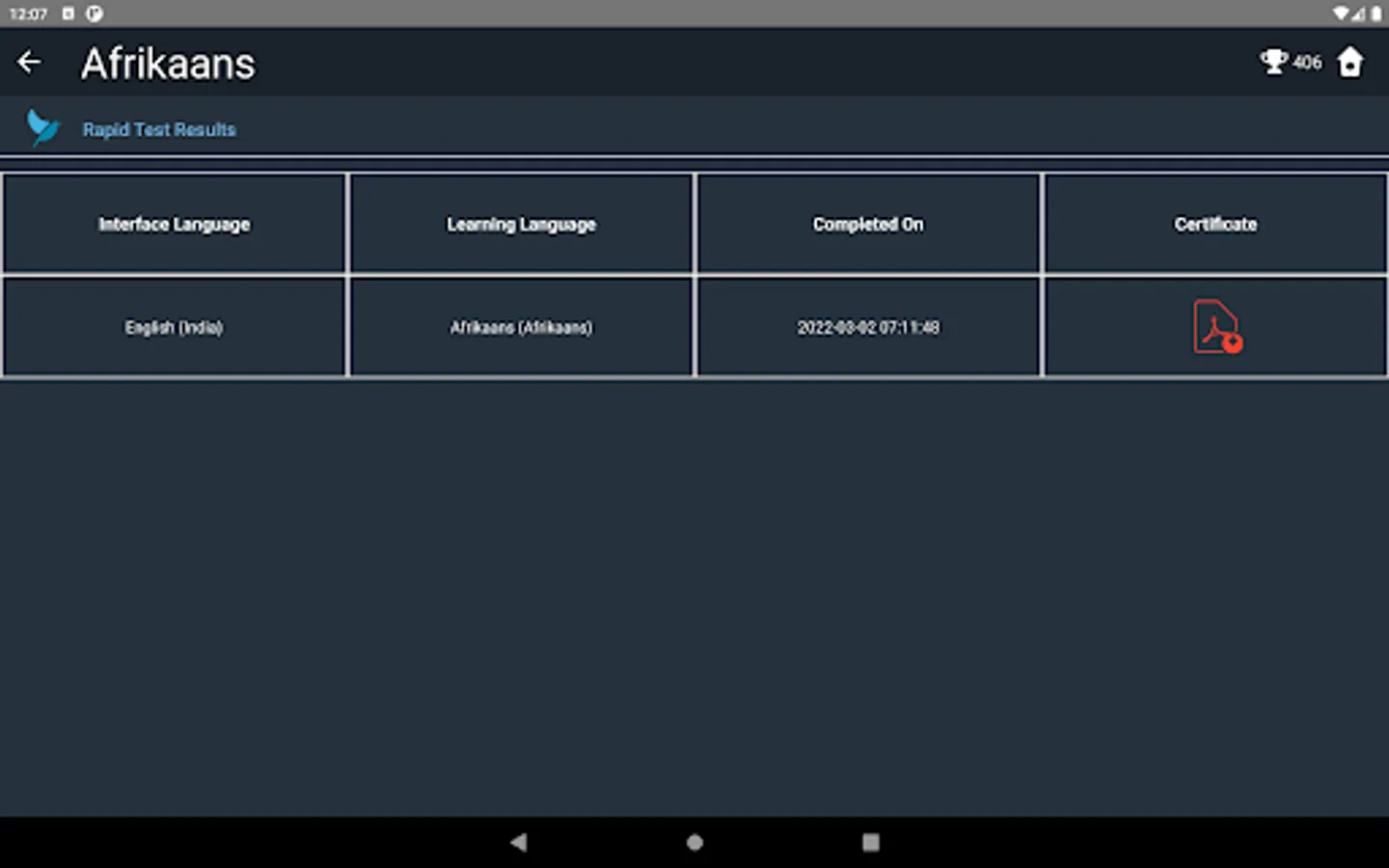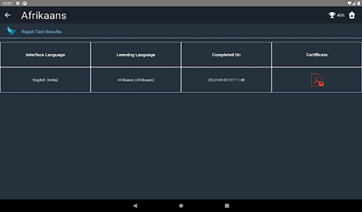 2) Paid. For a low fee, you can take our Rapid Afrikaans Adaptive test, which will provide you with a certificate of proficiency with your CEFR score in just 45 minutes. The rapid test uses questions that are progressively more difficult to accurately gauge your level of proficiency.