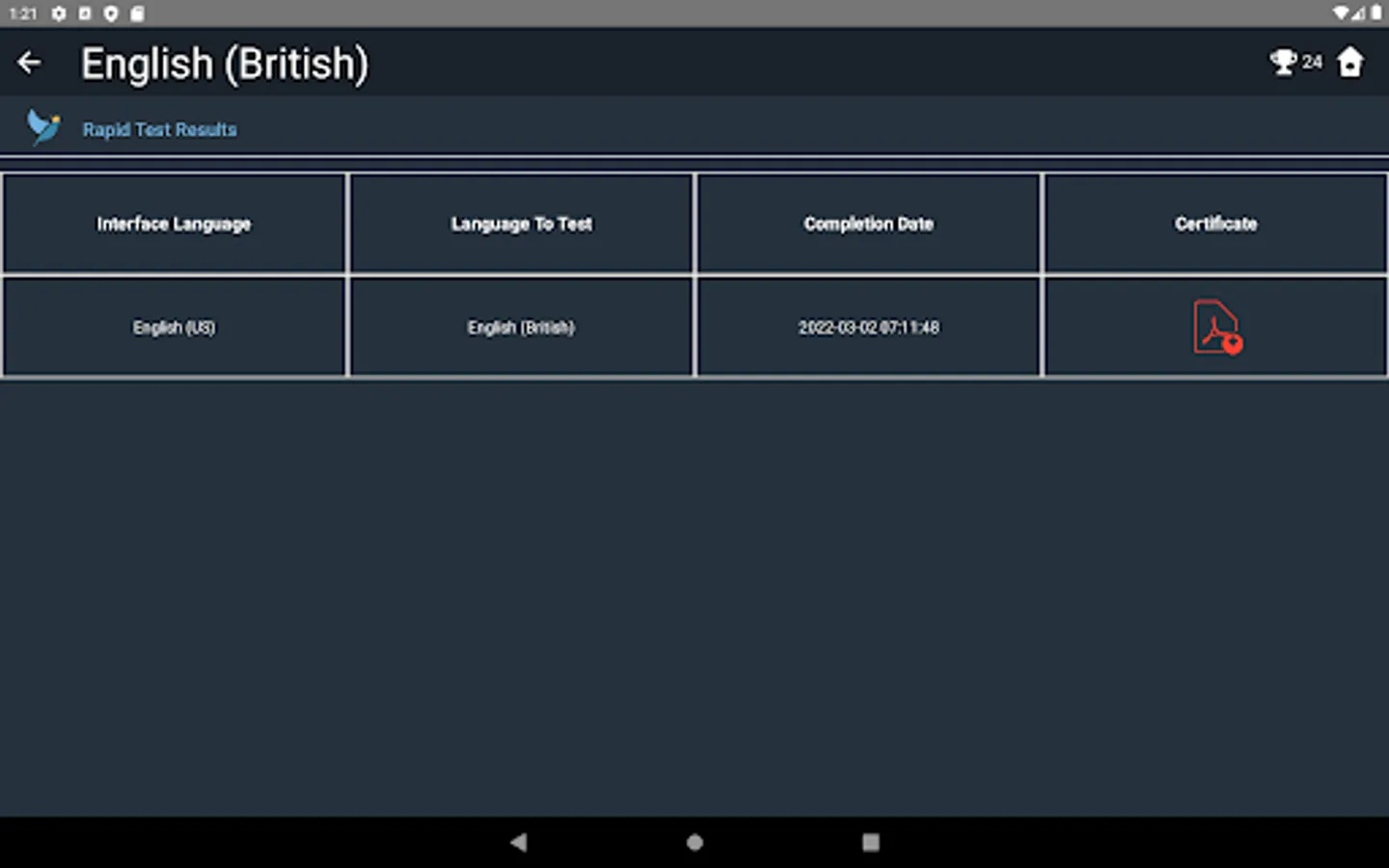 2) Paid. For a low fee, you can take our Rapid British English Adaptive test, which will provide you with a certificate of proficiency with your CEFR score in just 45 minutes. The rapid test uses questions that are progressively more difficult to accurately gauge your level of proficiency.