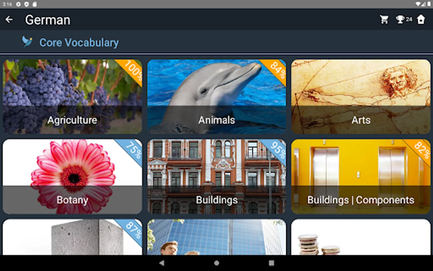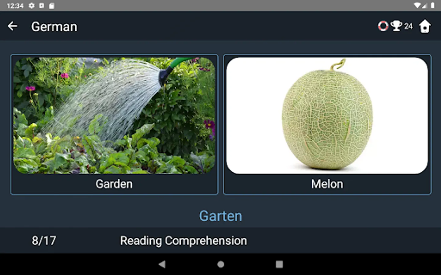 This app does not teach German. It assumes that you already have sufficient knowledge of German and specializes in assessing your proficiency.