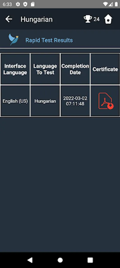 2) Paid. For a low fee, you can take our Rapid Hungarian Adaptive test, which will provide you with a certificate of proficiency with your CEFR score in just 45 minutes. The rapid test uses questions that are progressively more difficult to accurately gauge your level of proficiency.