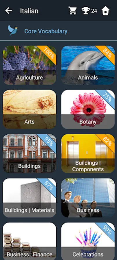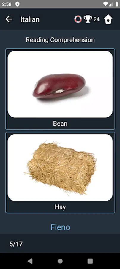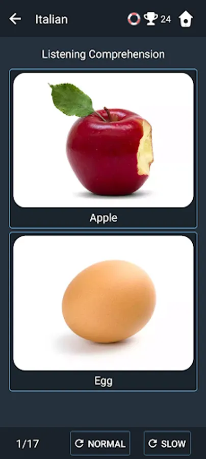 This app does not teach Italian. It assumes that you already have sufficient knowledge of Italian and specializes in assessing your proficiency.