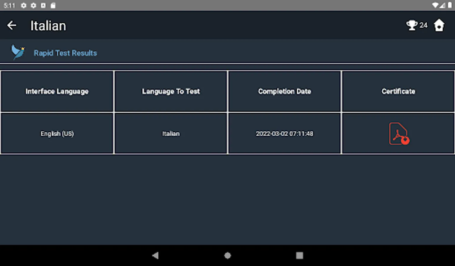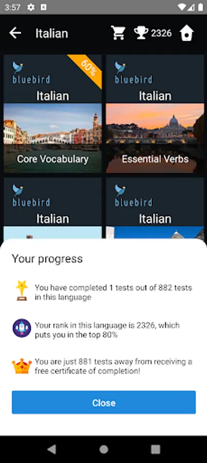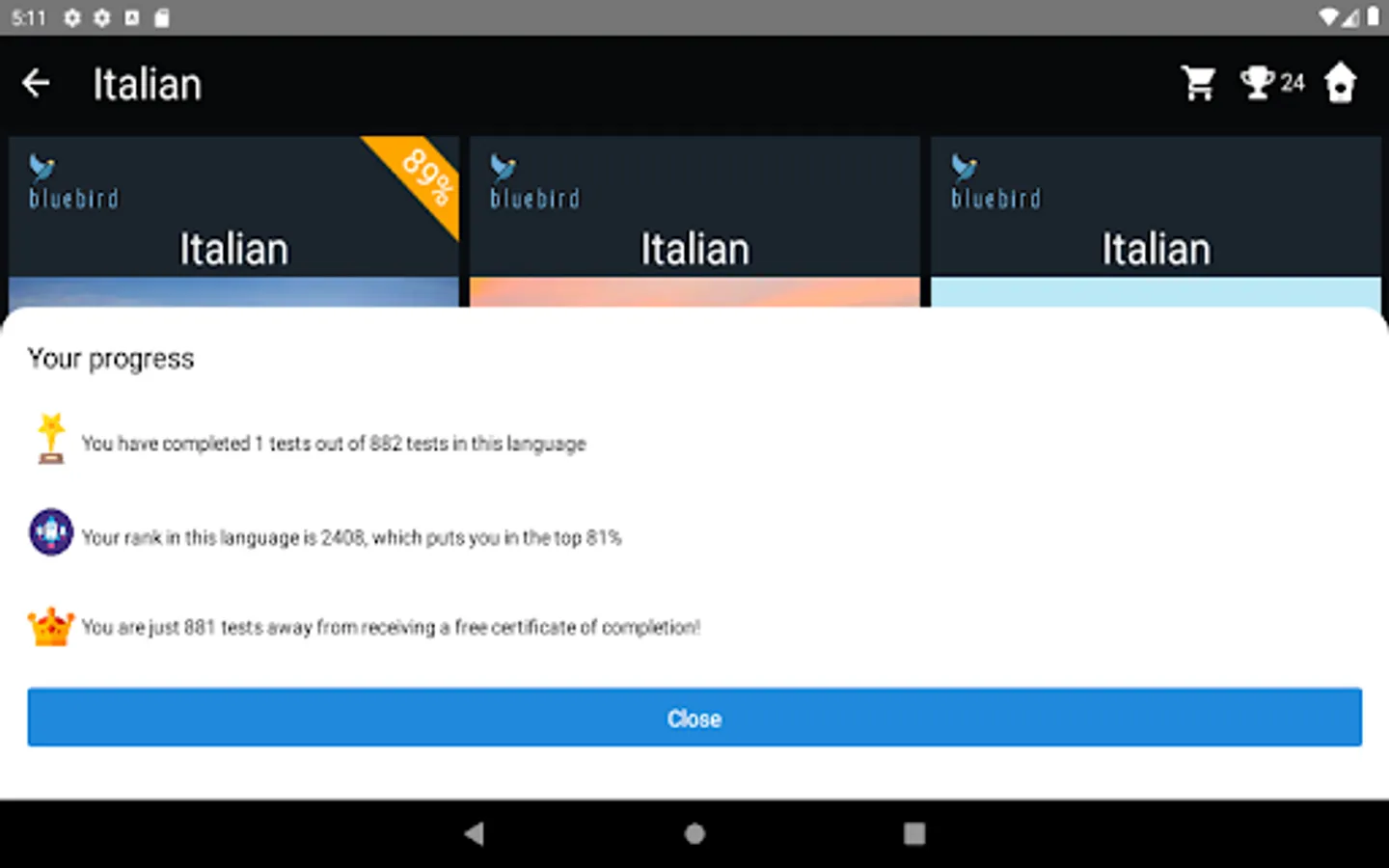 Bluebird Italian Tests evaluates your knowledge of Italian and provides an official PDF certificate of proficiency with your CEFR score (Common European Framework of Reference for Languages).