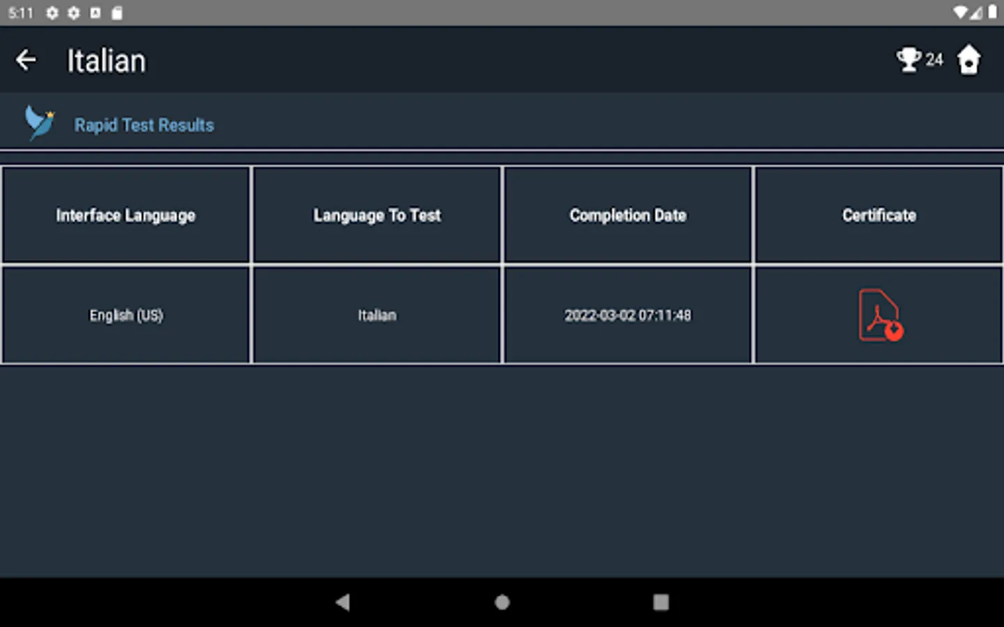 2) Paid. For a low fee, you can take our Rapid Italian Adaptive test, which will provide you with a certificate of proficiency with your CEFR score in just 45 minutes. The rapid test uses questions that are progressively more difficult to accurately gauge your level of proficiency.