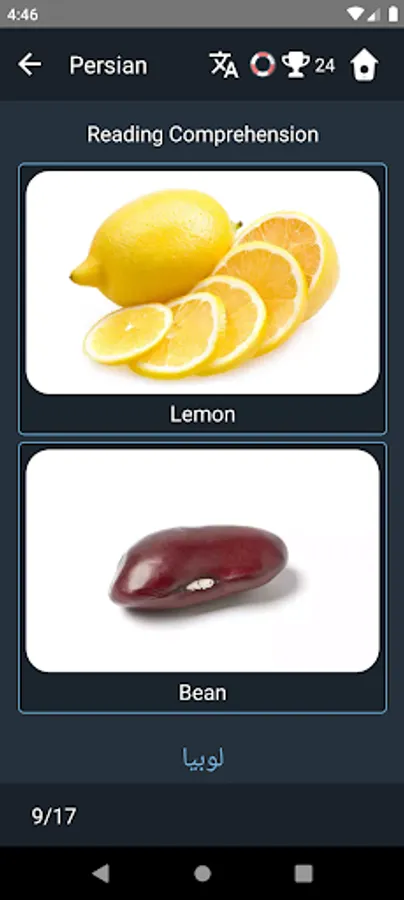 This app does not teach Persian. It assumes that you already have sufficient knowledge of Persian and specializes in assessing your proficiency.