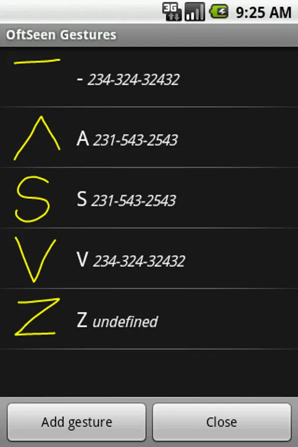 OftSeen Gestures lets you speed-dial by drawing a gesture. Create your own gestures and assign numbers to them. Place an icon on your desktop for fast calling of phone numbers.
