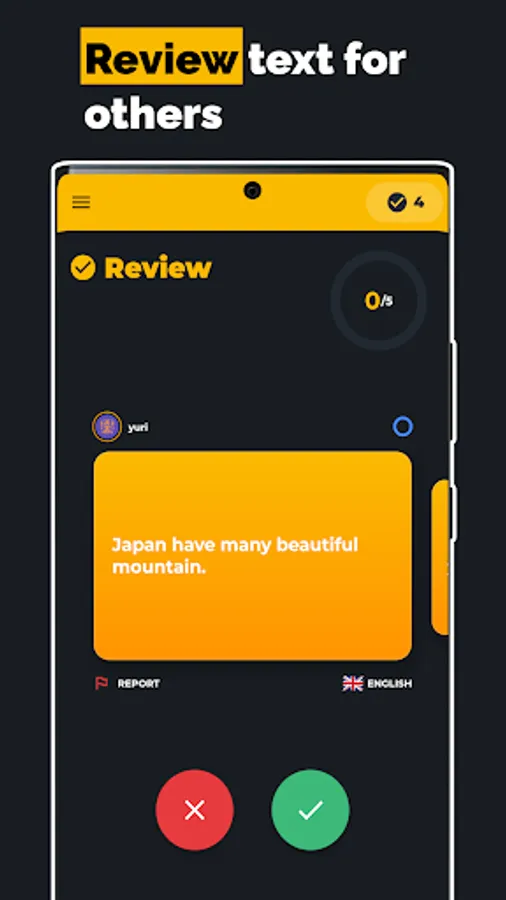 And you can contribute too - you're an expert in your own native language, so there are millions of people around the world who you can help in the same way. Use our incredibly simple interface to review text for others - it's easy for you, but they'll appreciate it a lot! The more you review, the more requests you'll be able to make.