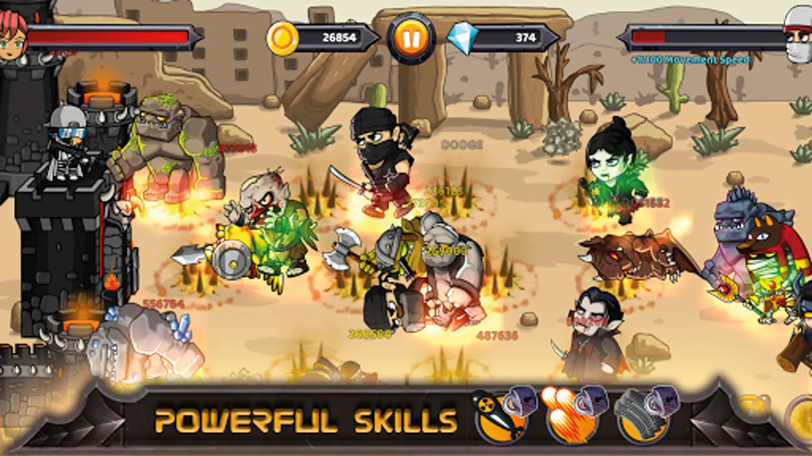 clothes. Upgrade your skills! And don't cross the incoming creature waves! Very different