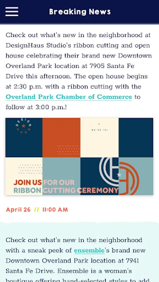 - Opt-in to push notifications for instant info, breaking news, and special announcements about all the great things happening in Downtown Overland Park.