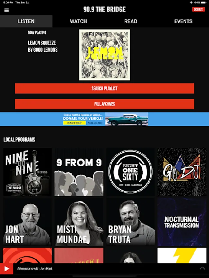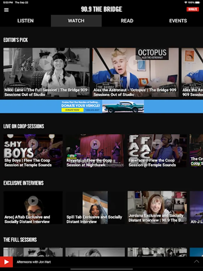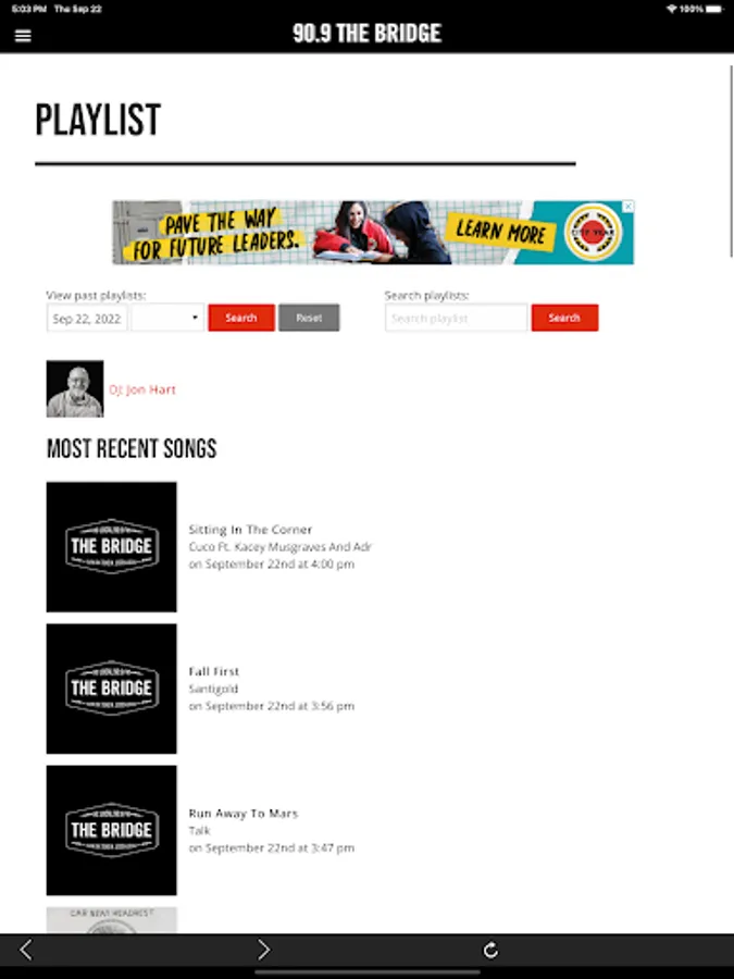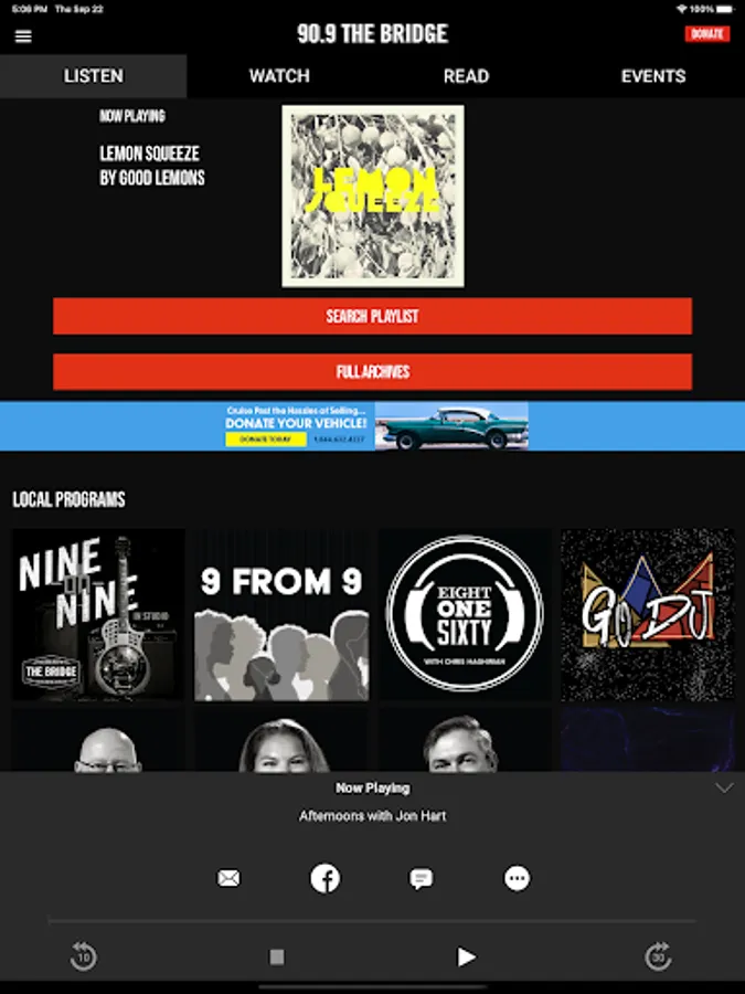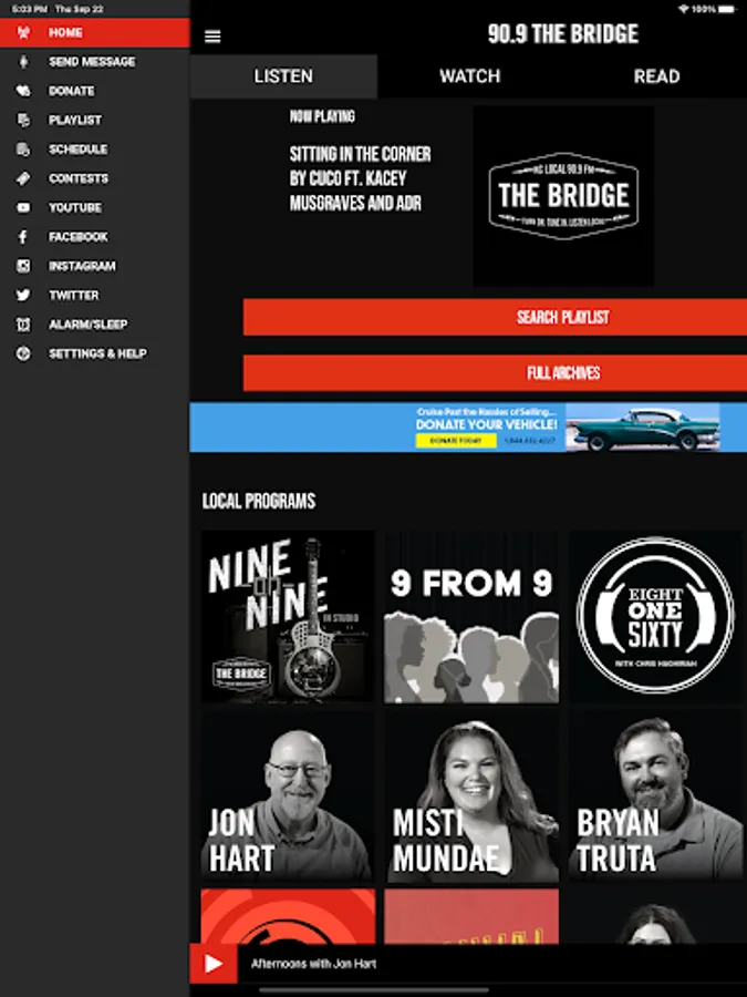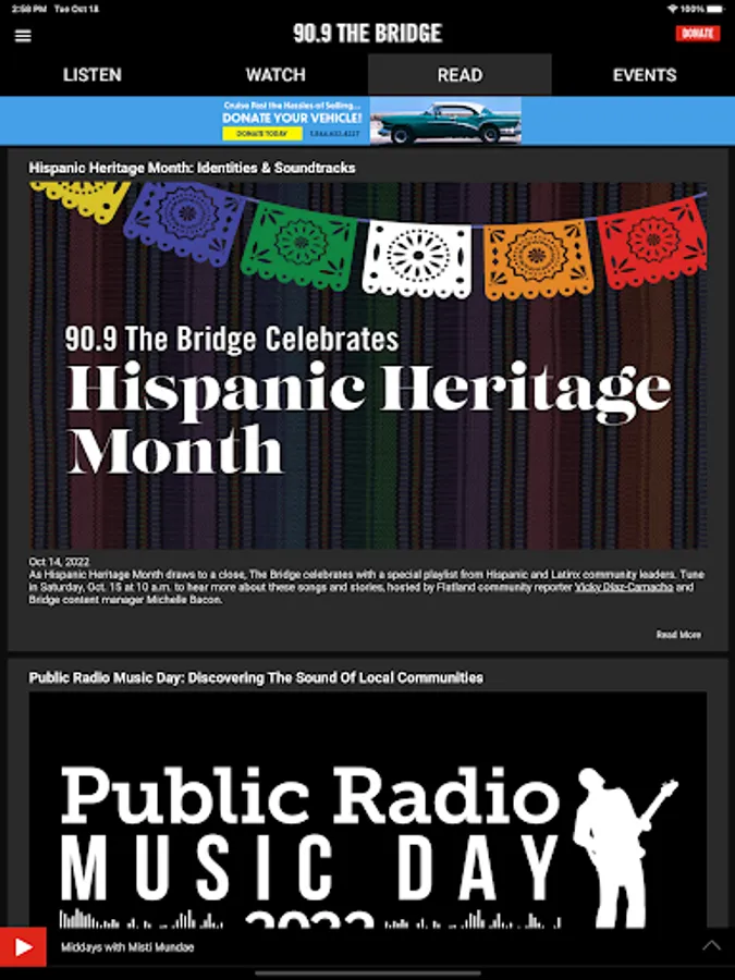 The Bridge’s Public Radio App allows you to listen to The Bridge LIVE and search our past playlists, watch and read our latest music content, view our events calendar, and listen On Demand to your favorite Bridge shows, sessions and interviews!