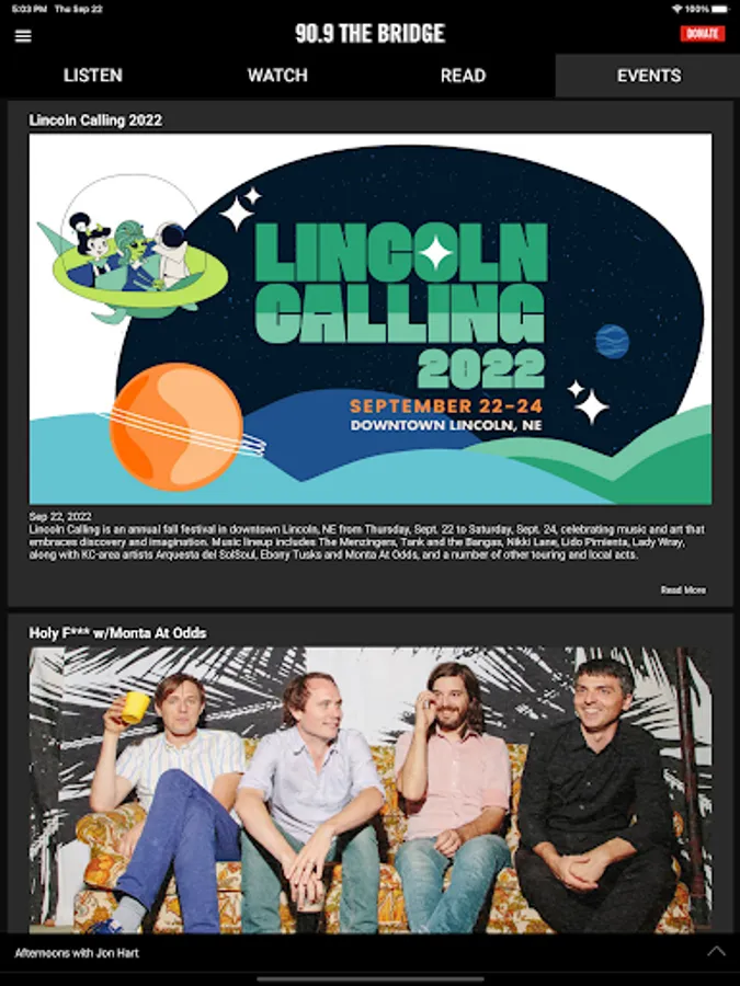 90.9 The Bridge is Kansas City’s music discovery station — the listener-supported alternative to commercial radio, playing a curated mix of indie/alt rock, Americana, folk, blues, hip-hop, R&B/soul and electronic music from emerging artists, heritage acts and Kansas City musicians.