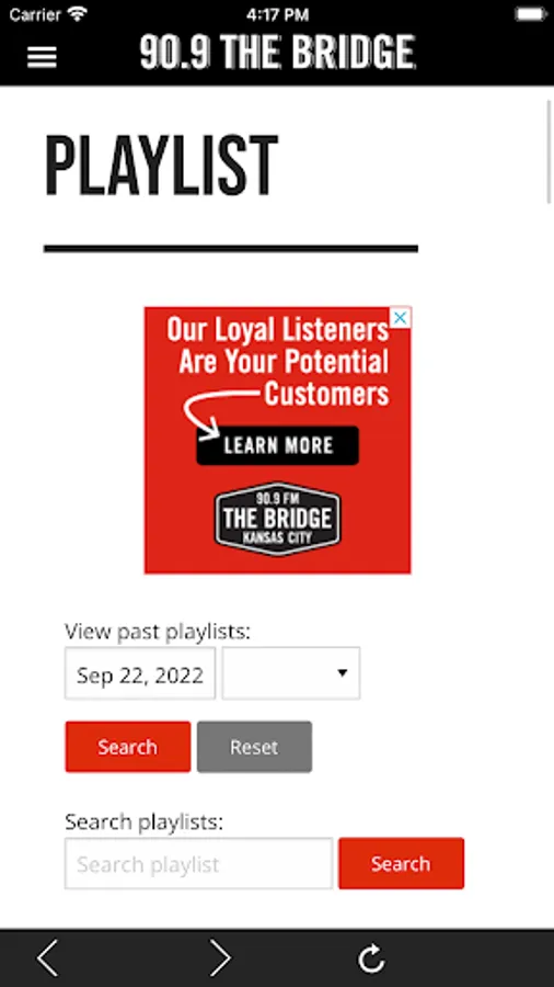 * Complete with current “now playing” information and the ability to search past playlists by date and time