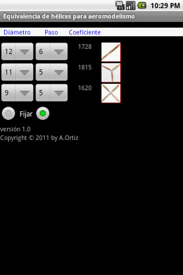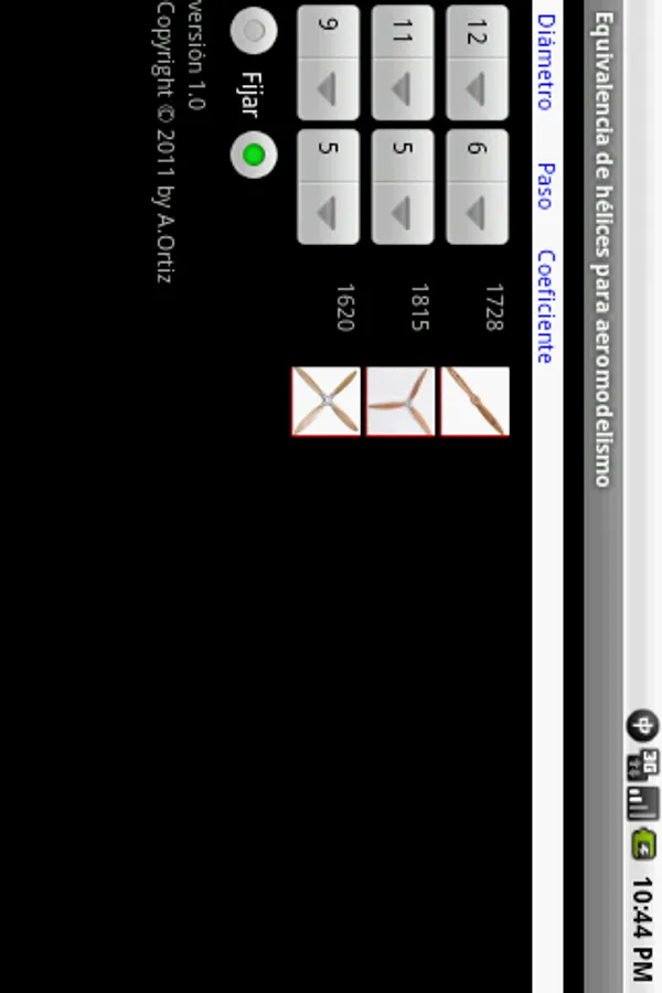 It is an application designed for modelers that allows a simple way to know that helices are equivalent depending on the diameter and number of blades.