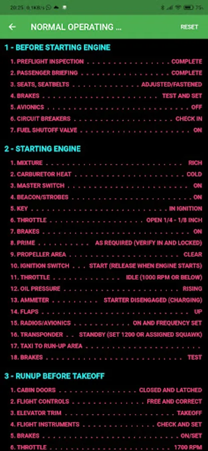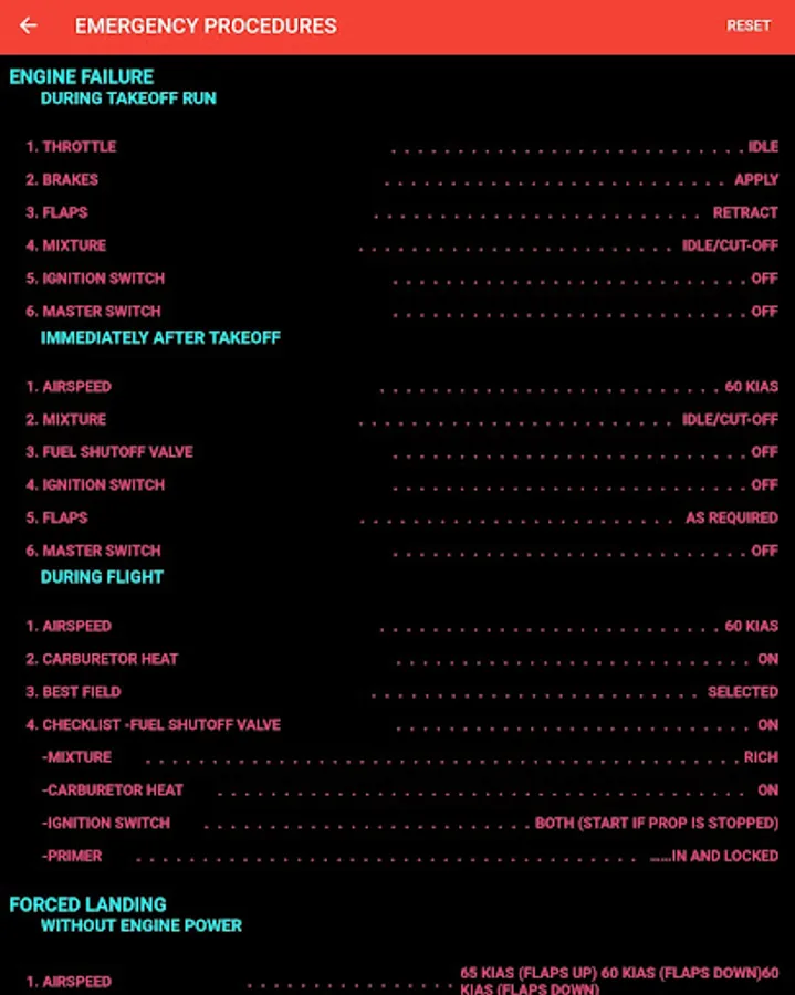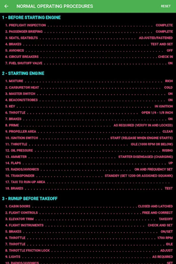 This plane checklist was designed for flight training for the Cessna 152 year 1984 containing only the main procedures.