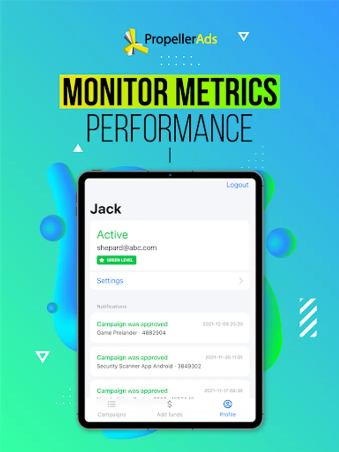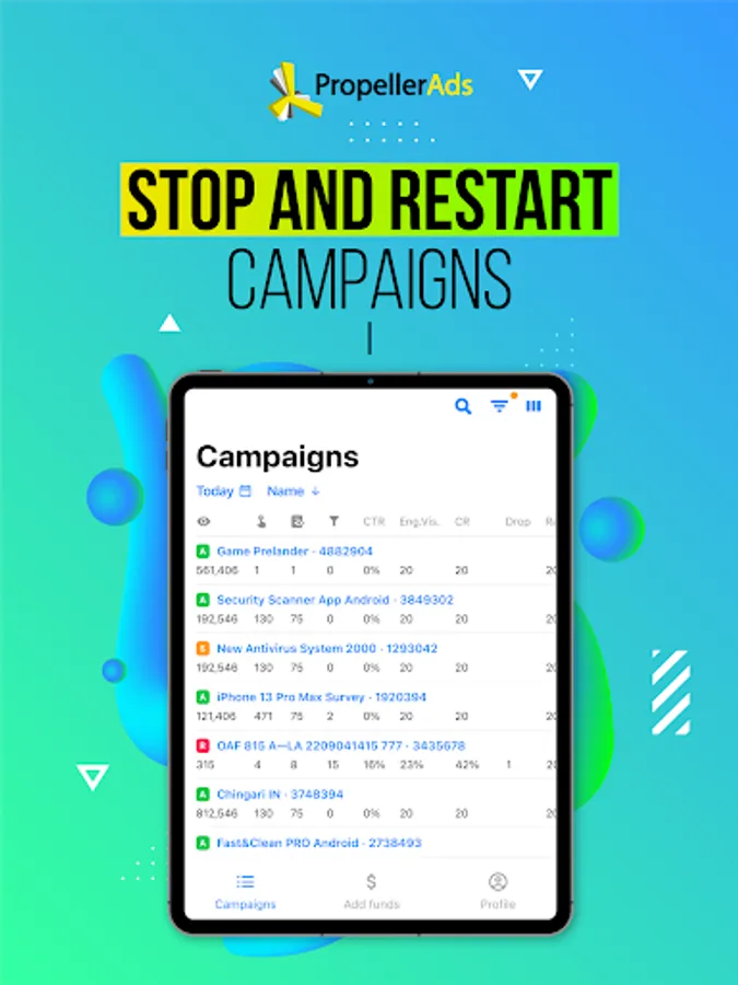 Download the PropellerAds Advertiser app to take full control of your advertising activity and streamline your conversion flow.