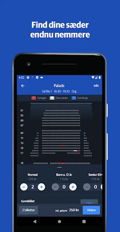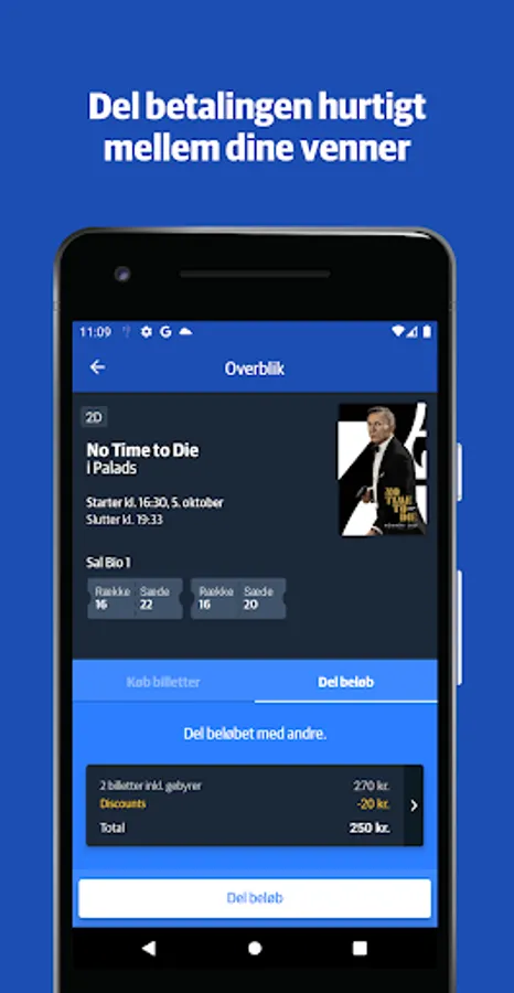 Now you no longer need to text your friends about payment from other apps, bank transfers and so on. With the NF Bio app, you can book your cinema trip and send your friends a payment link so they can pay for their own tickets directly in the app! You get the entire overview in the app, so you can easily keep track of all tickets, which have been bought by whom, and which tickets are still unpaid.