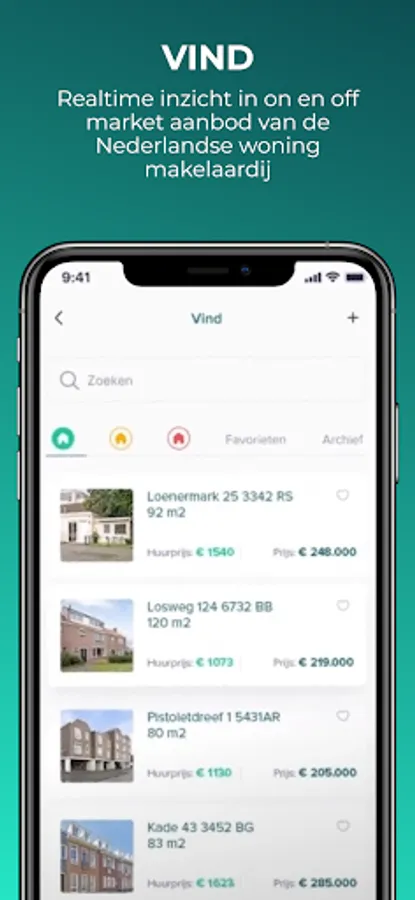 VIND is a sophisticated and smart search function that helps you with that. You have real-time insight into the new and complete range of the Dutch home brokerage and often before it is placed on sites such as Funda. In addition, there is also off-market offerings from deal sourcers and investors who want to sell their assets. You can see at a glance whether this offer is attractive to you.