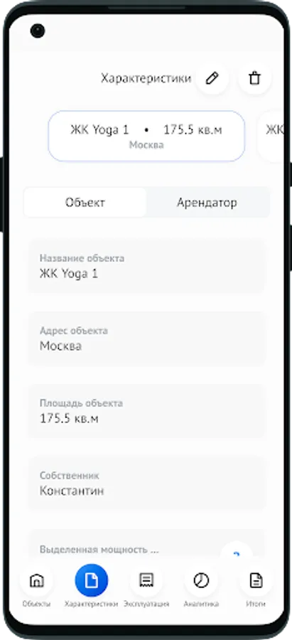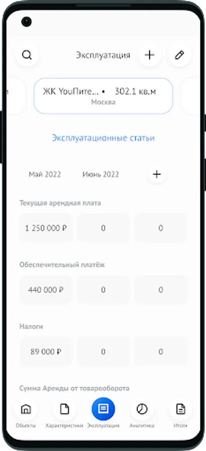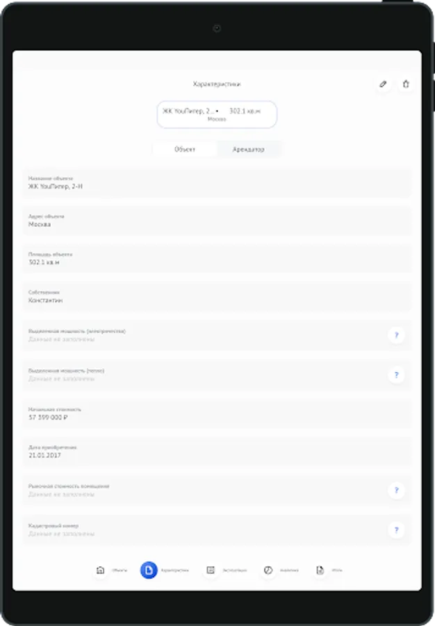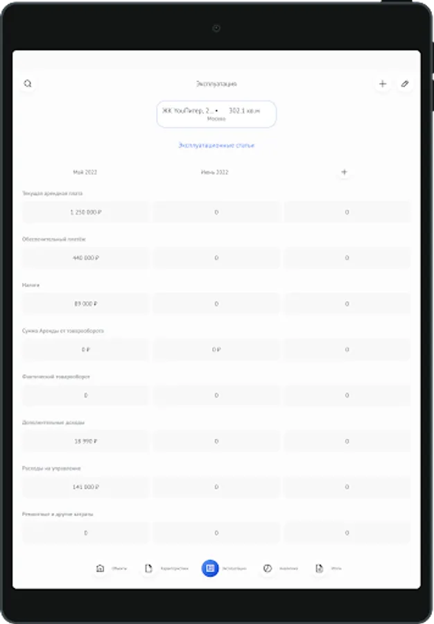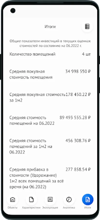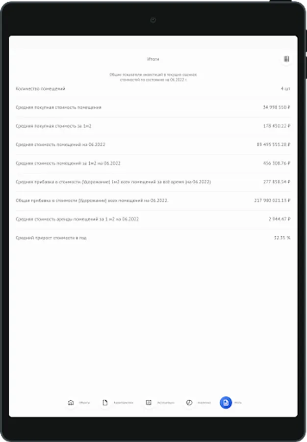 Application for operational management of investment objects, analysis of the real estate market and maintenance of actual operational articles