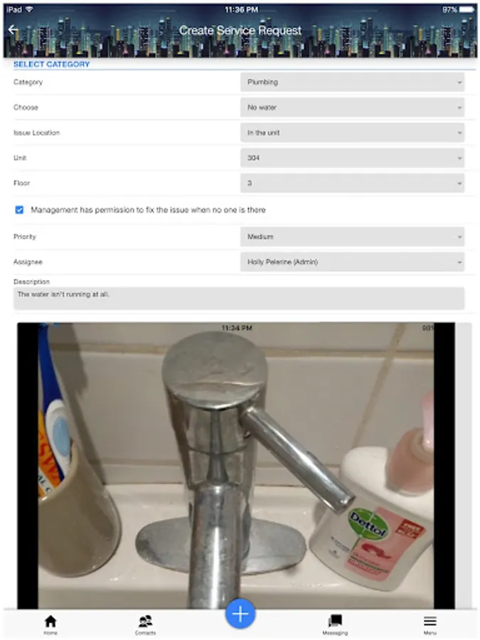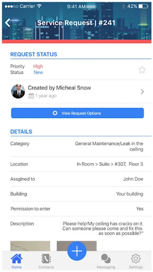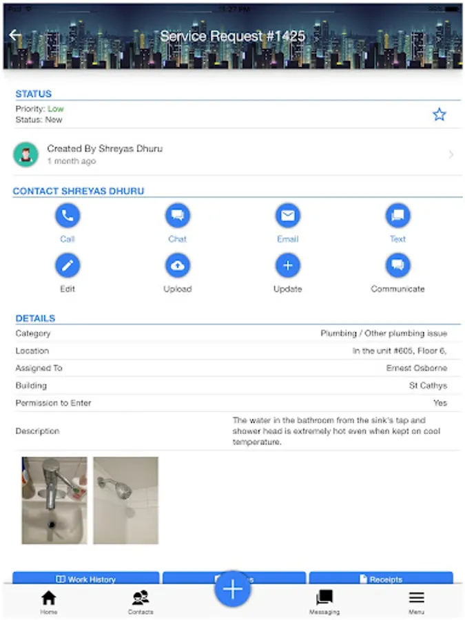 - One-tap contact buttons to Call, Chat, Email, or Text Message the creator of the work order