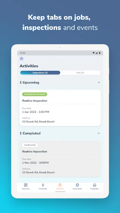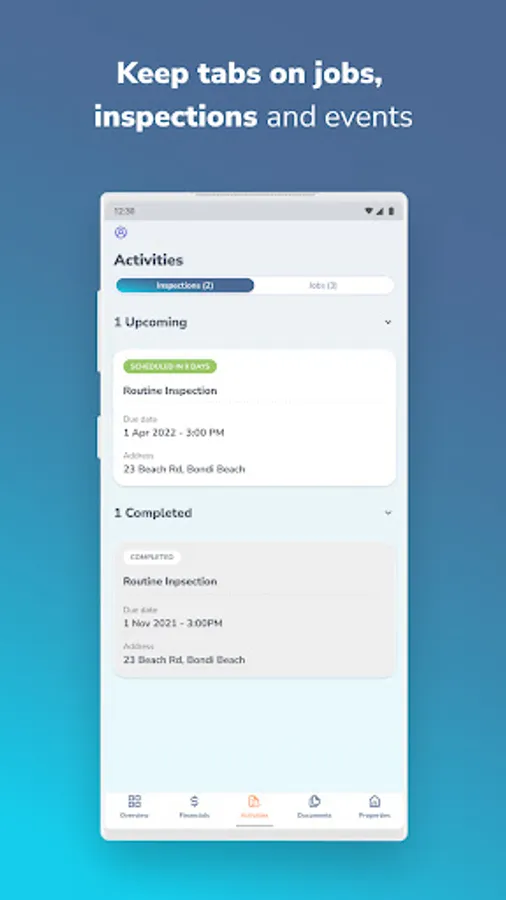 - Keep tabs on the status of jobs and inspections linked to your properties