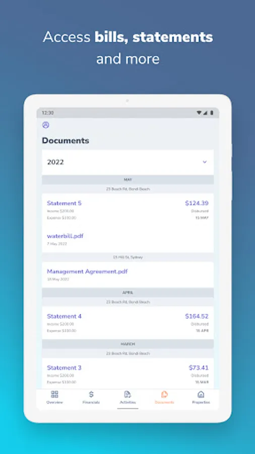 Get a full, clear picture of your investment property finances. Whether you’re after a quick snapshot of expenses, or you’d like to take a deep dive into your income–it’s all here! The PropertyMe app simplifies your life by sharing everything from upcoming events to important documents. Try it out today.