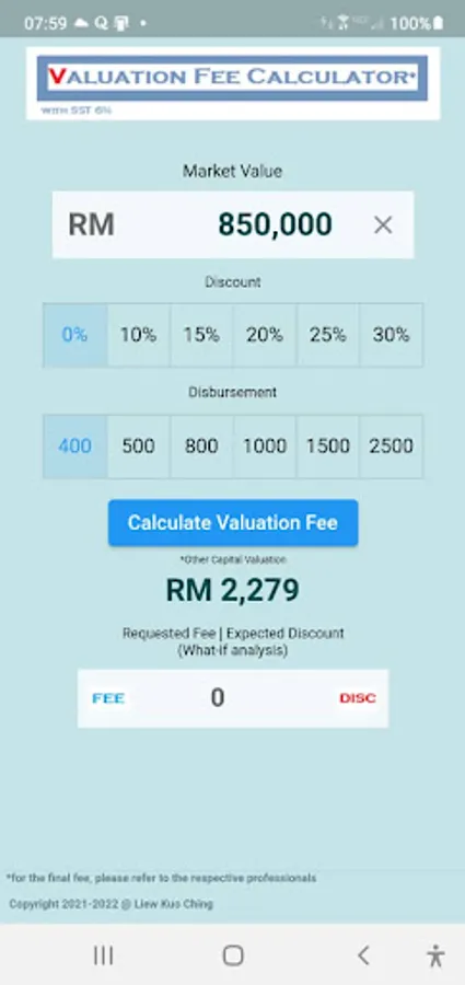 This valuation fee calculator (free version) is to calculate the valuation fee based on the prescribed Scale of Fee by the Board of Valuers, Appraisals, Estate Estates and Property Managers Malaysia (BOVEAP).