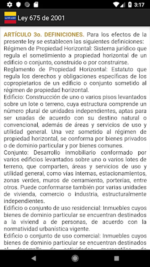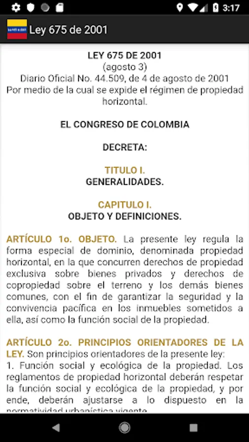 This law regulates the special form of ownership, called horizontal property, in which exclusive property rights over private property and co-ownership rights are shared on the land and other common goods, in order to guarantee security and peaceful coexistence in the properties subject to it, as well as the social function of the property.